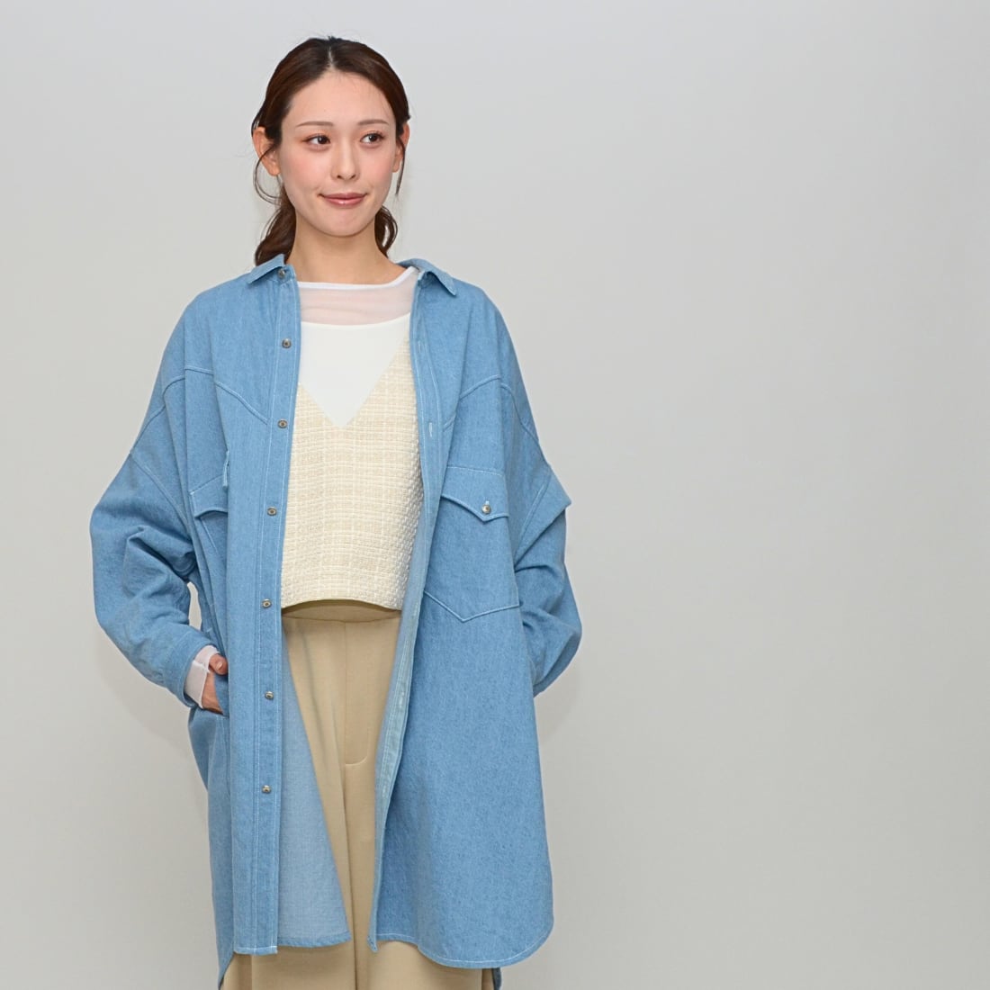 ワイドパンツやスカートとも相性抜群なショート丈。いつものTシャツやブラウスに重ねるだけで、大人の余裕を感じさせる旬のボリューム感を楽しめます。