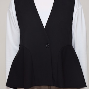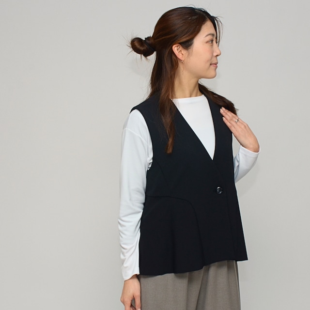 裾にかけて広がる計算されたフリルデザイン。ワイドパンツや細身のパンツとも相性が良く、体型をカバーしながら華やかな印象を演出。