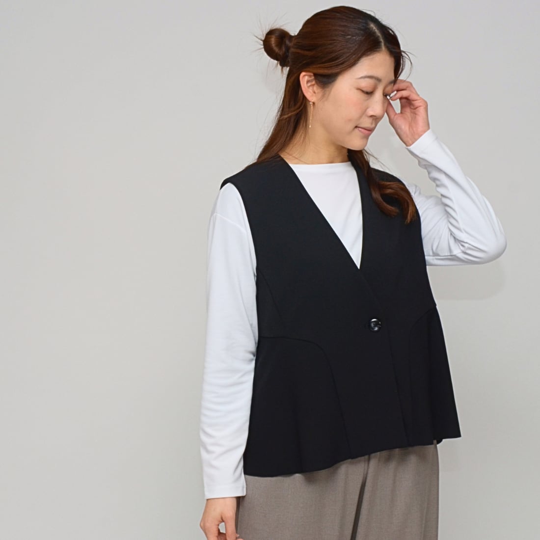 前後の丈感に差をつけたことで、横から見た時のラインも美しく。