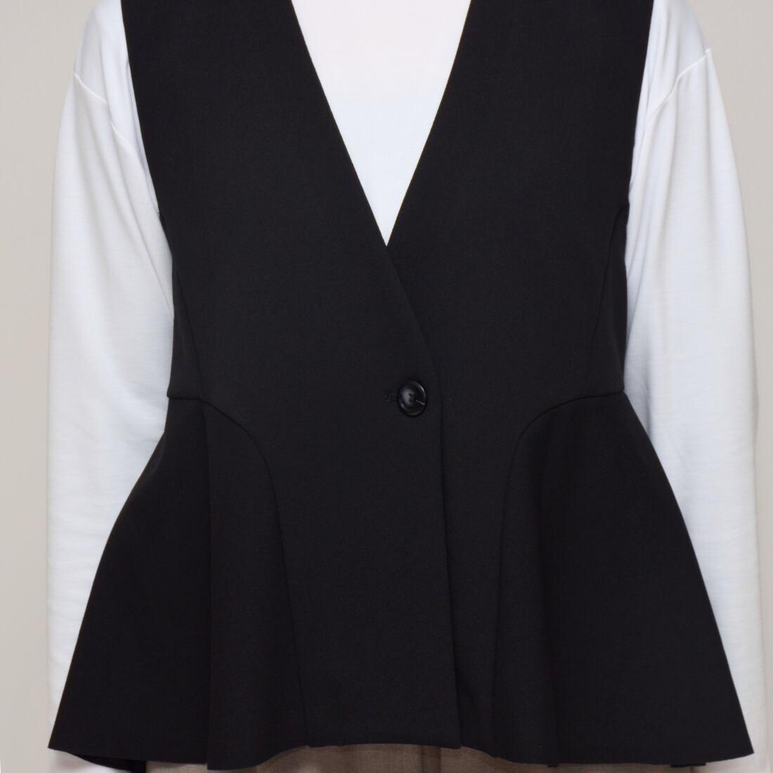 【360度美しく】梨地ダブルフェイス・セミフリルベスト‐ LEQ-2633 ブラック ‐