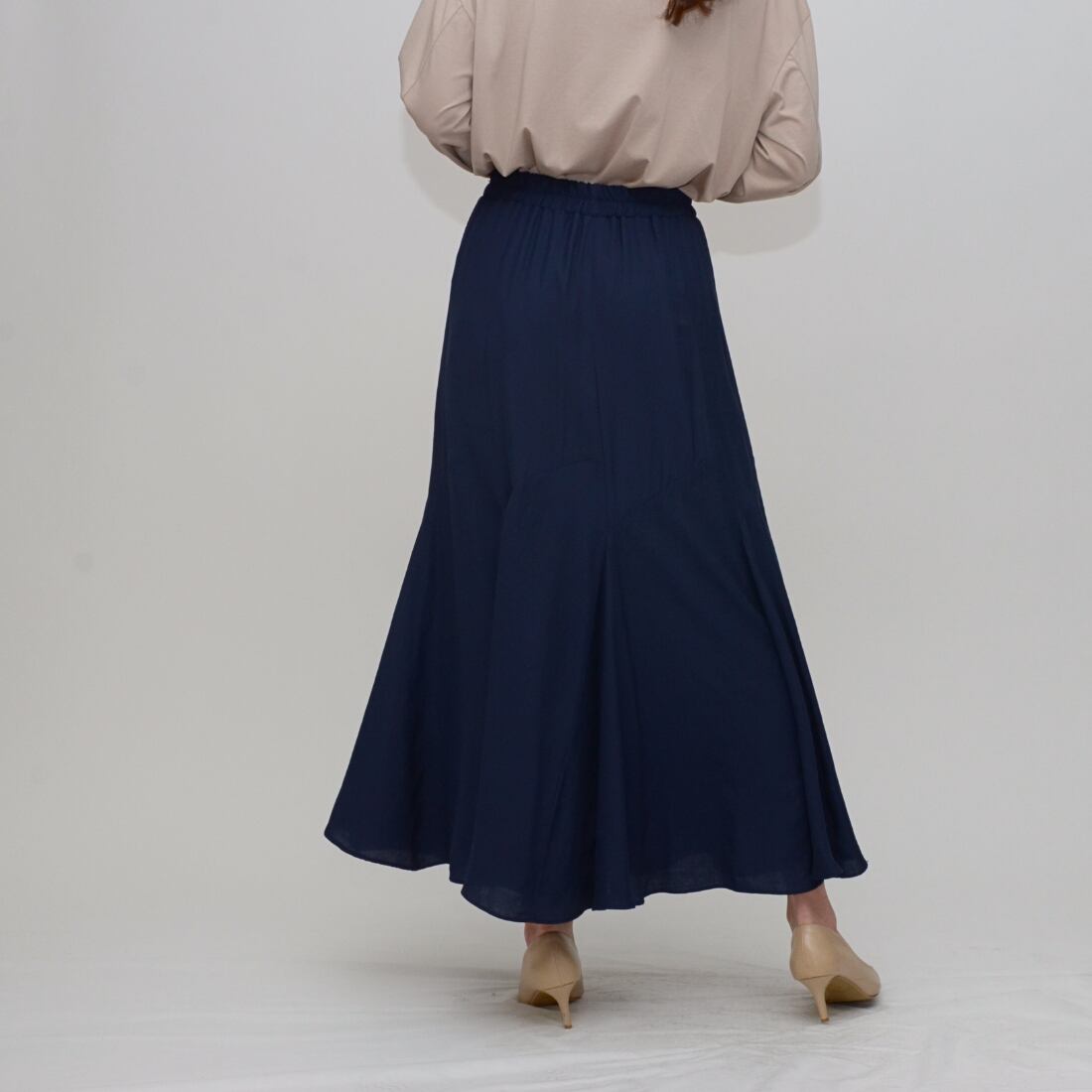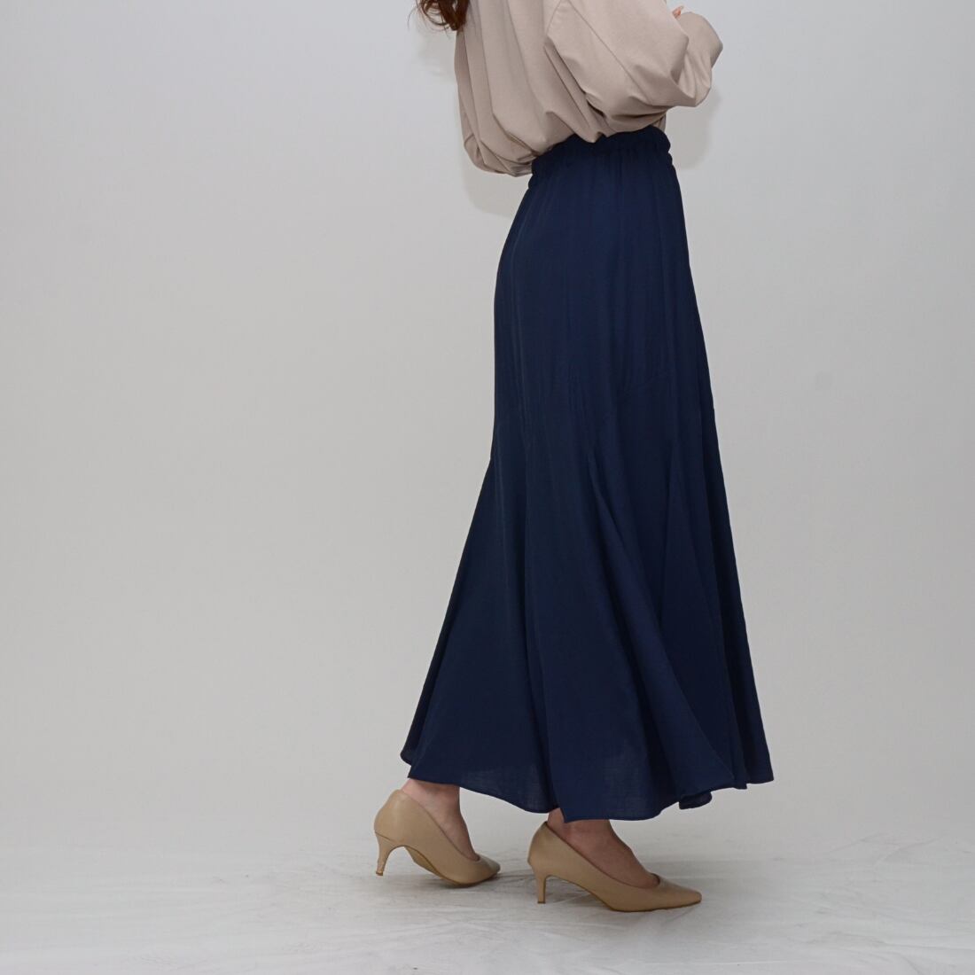 【スタイルアップの決定版】リネンライク・イレギュラー切替えフレアスカート ‐ LER-2544 ネイビー ‐