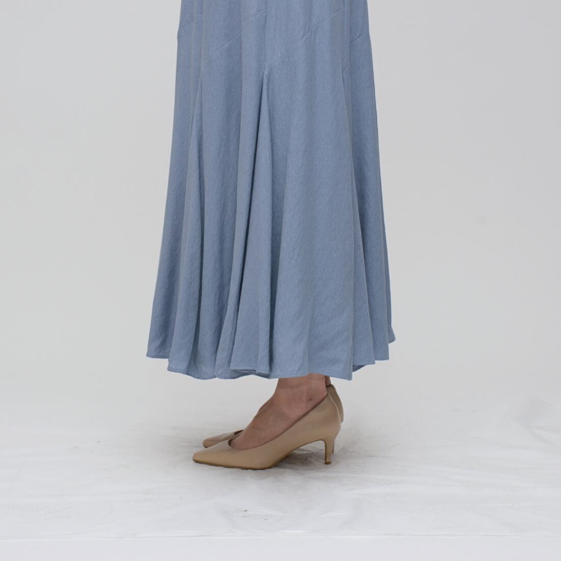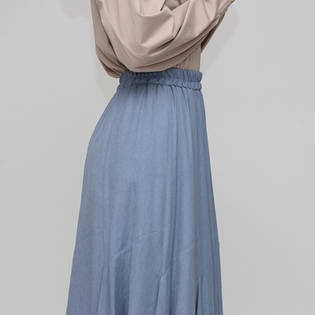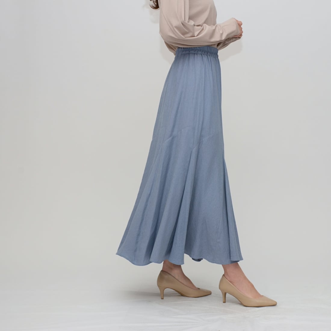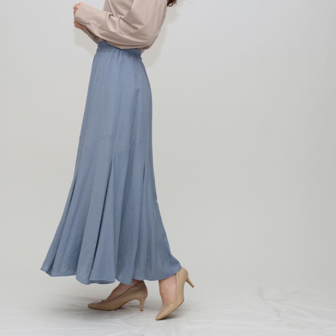 【スタイルアップの決定版】リネンライク・イレギュラー切替えフレアスカート ‐ LER-2544 サックス‐