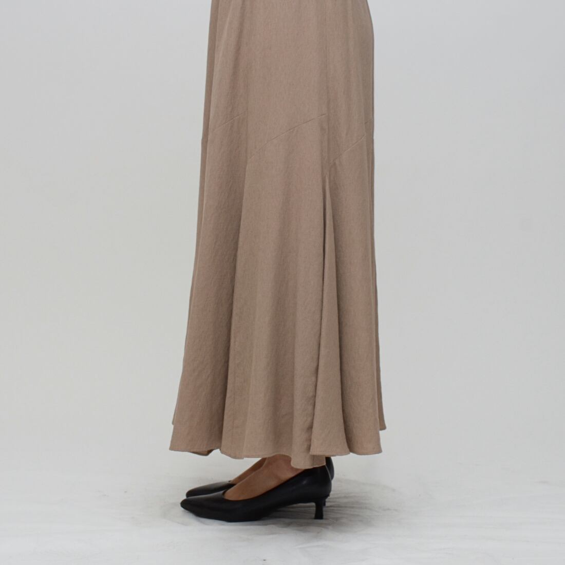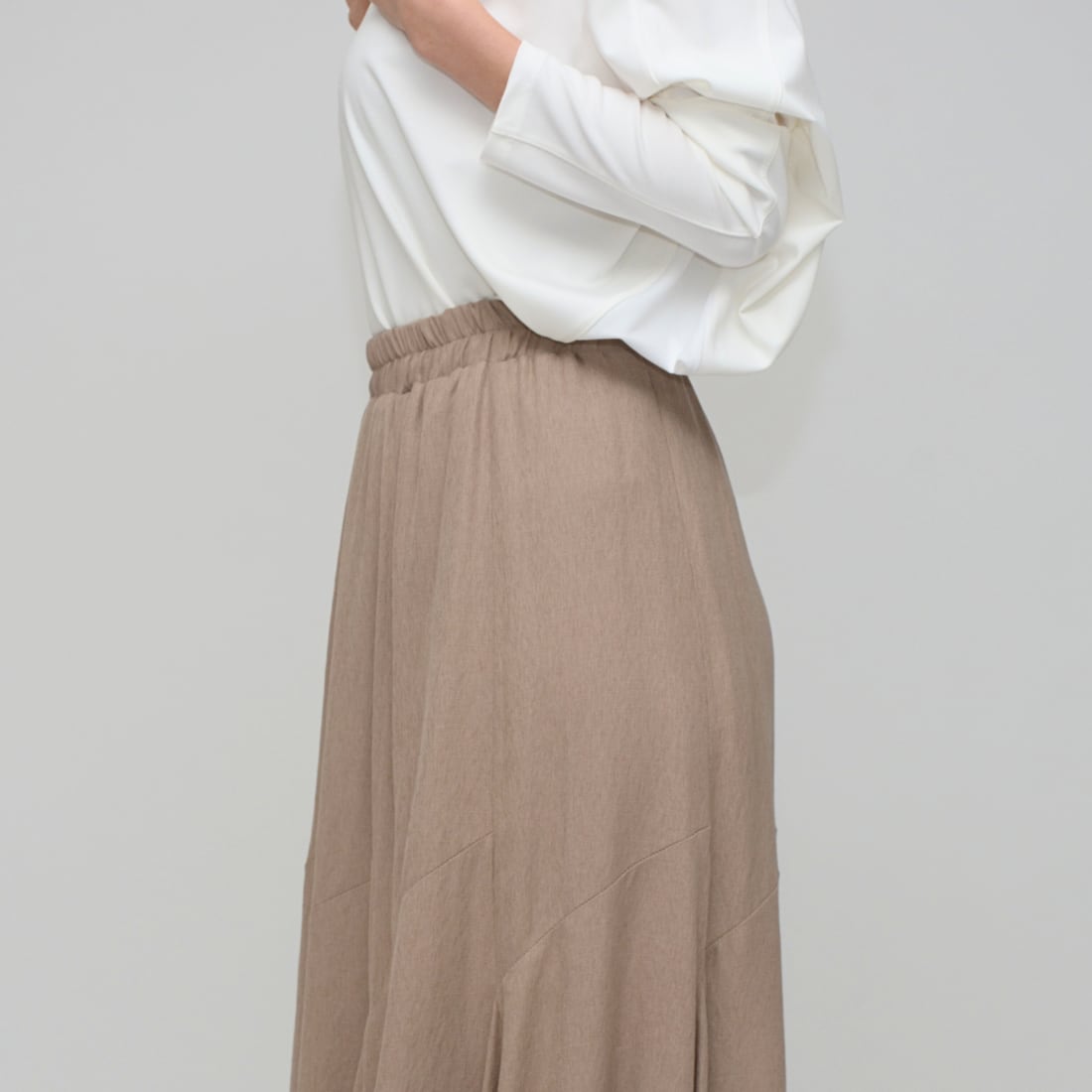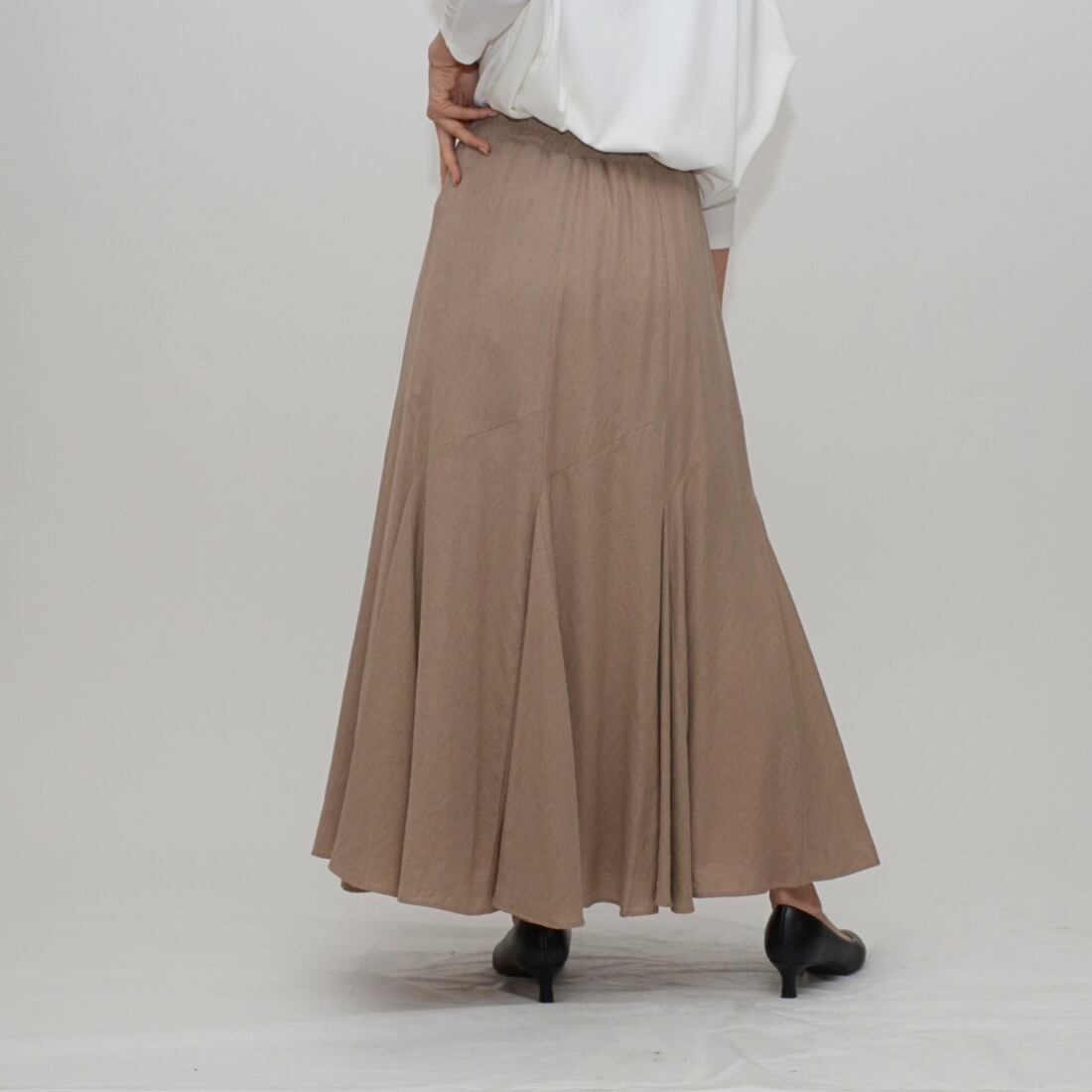 【スタイルアップの決定版】リネンライク・イレギュラー切替えフレアスカート ‐ LER-2544 ベージュ‐