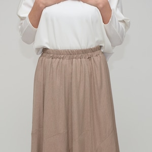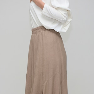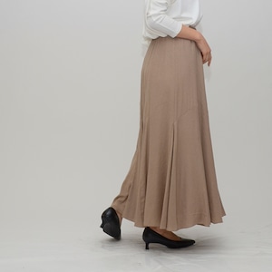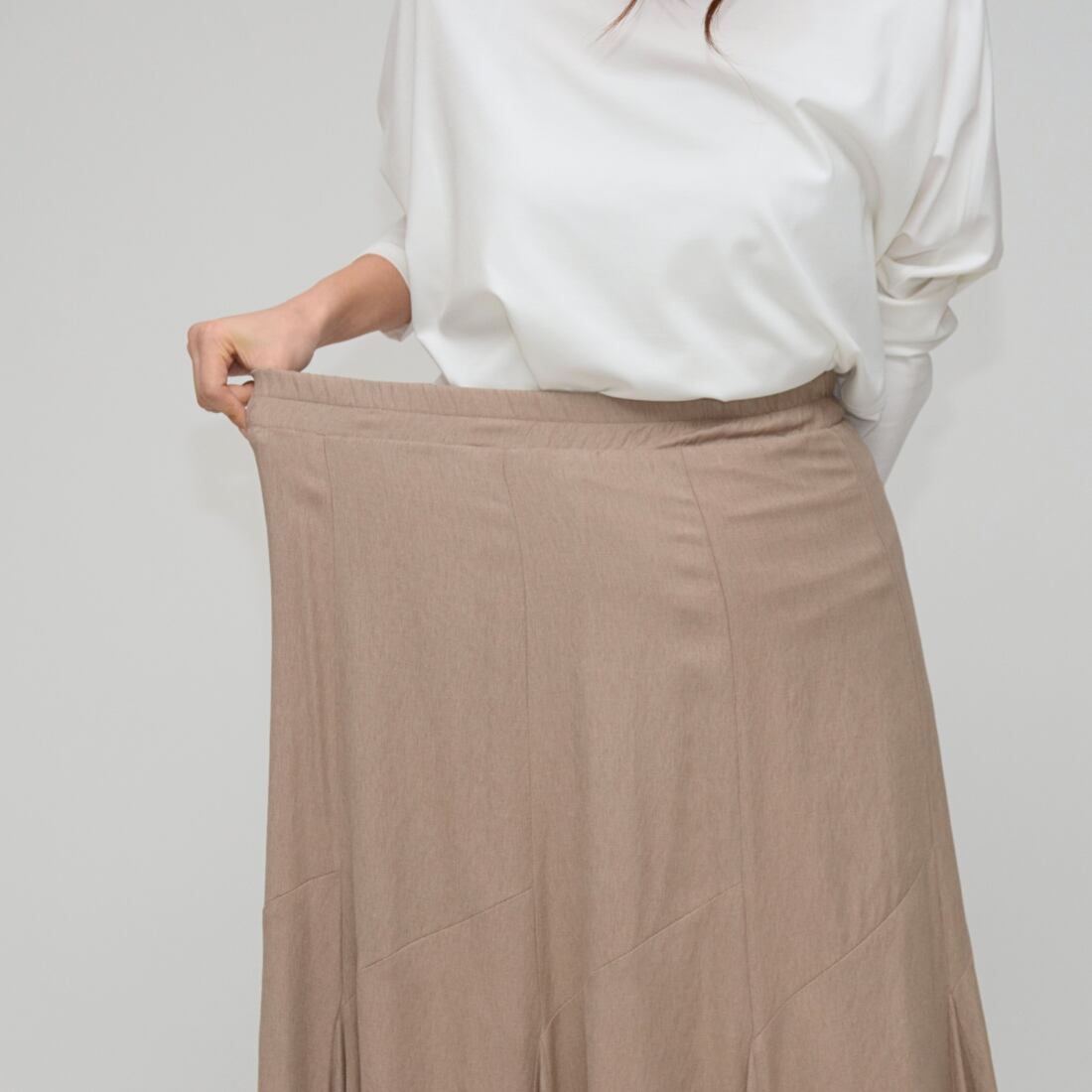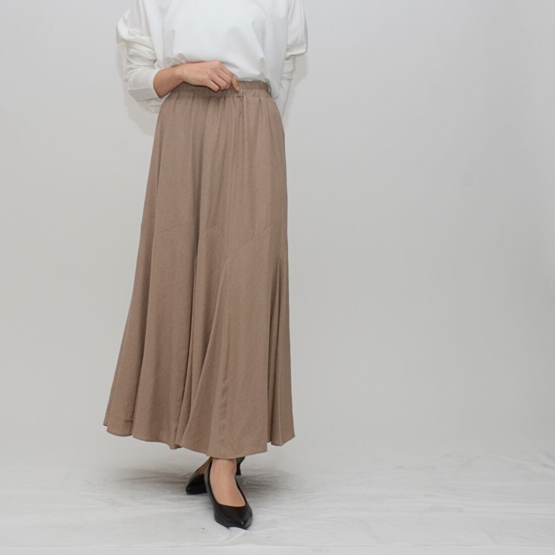 【スタイルアップの決定版】リネンライク・イレギュラー切替えフレアスカート ‐ LER-2544 ベージュ‐