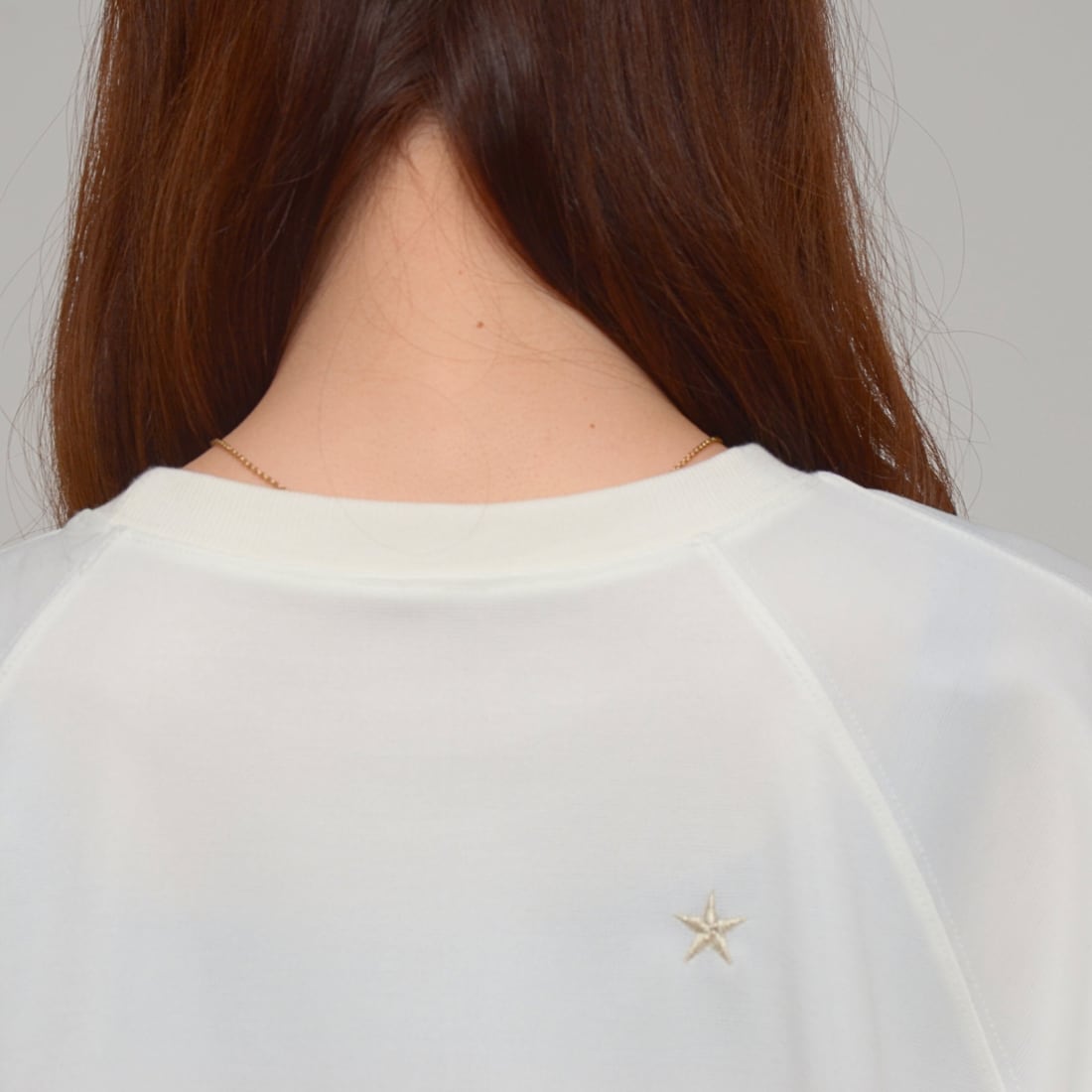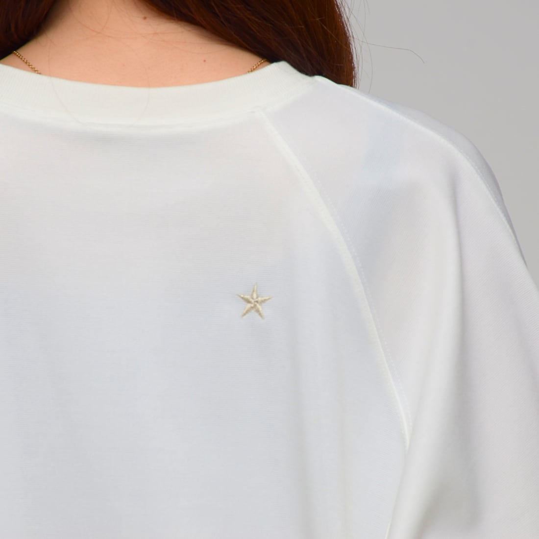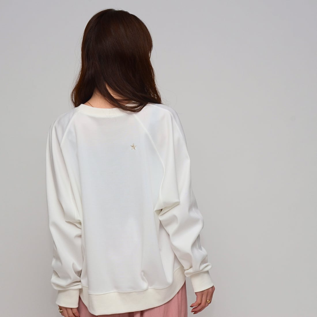 背面に施されたスター刺繍が、シンプルなコーディネートのアクセント。