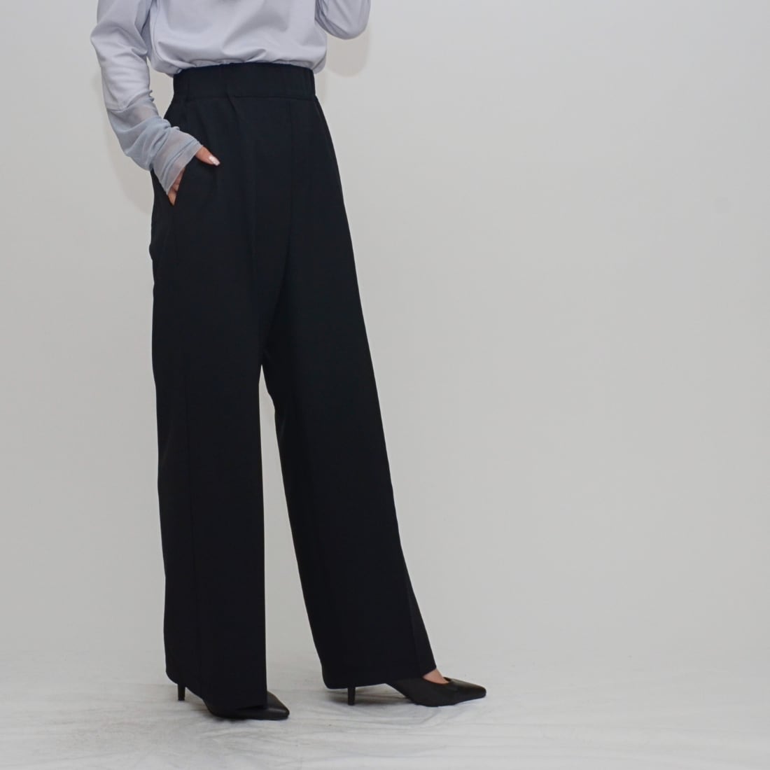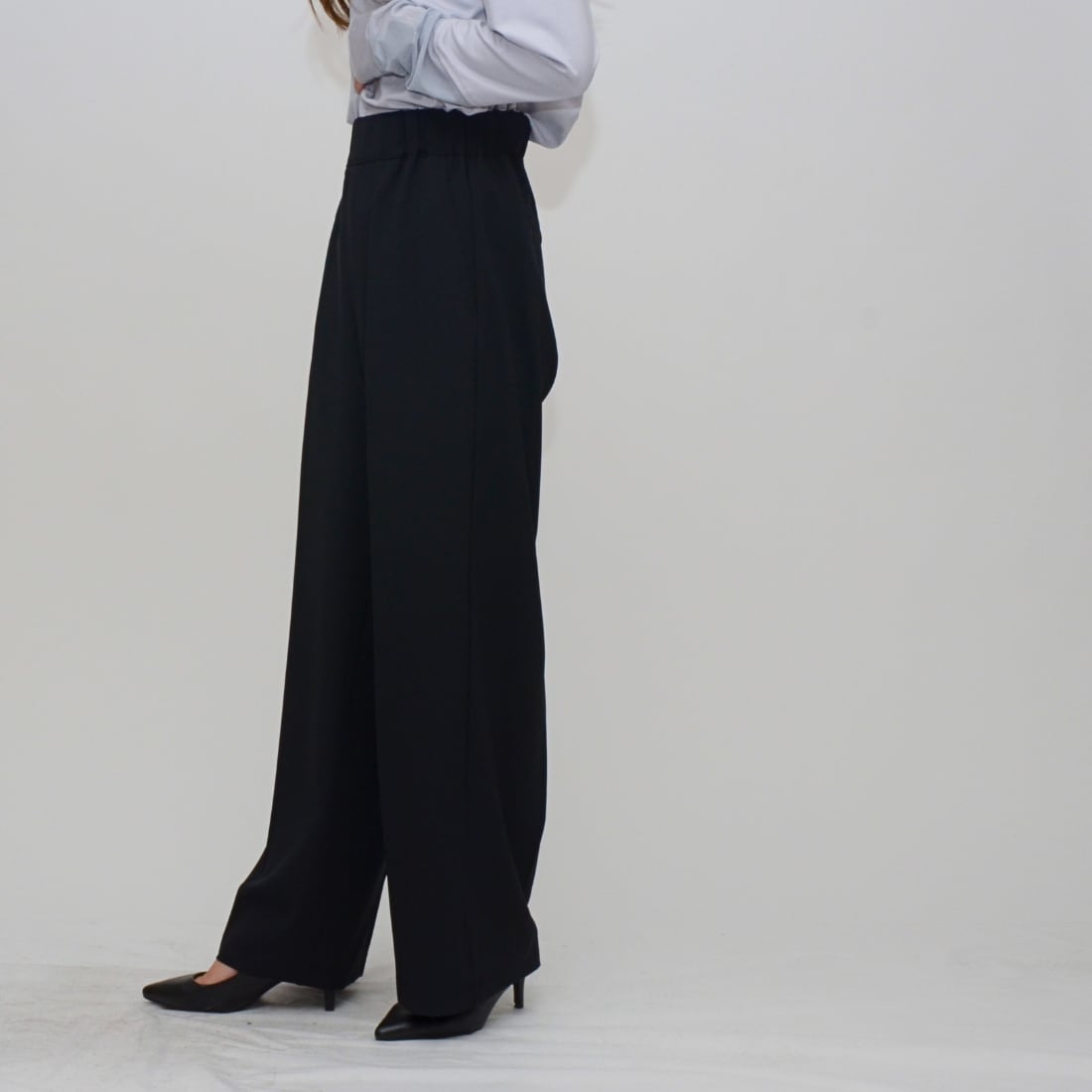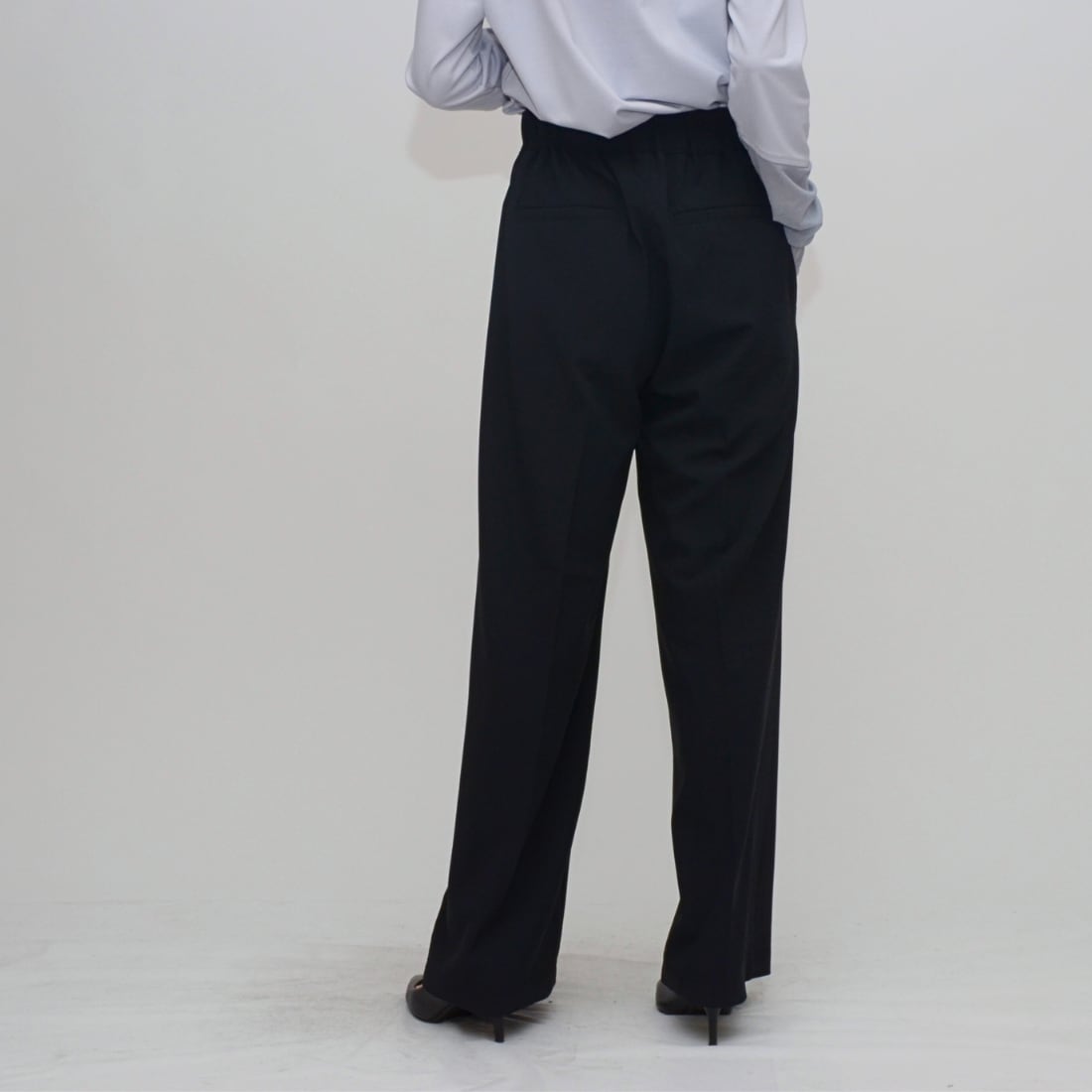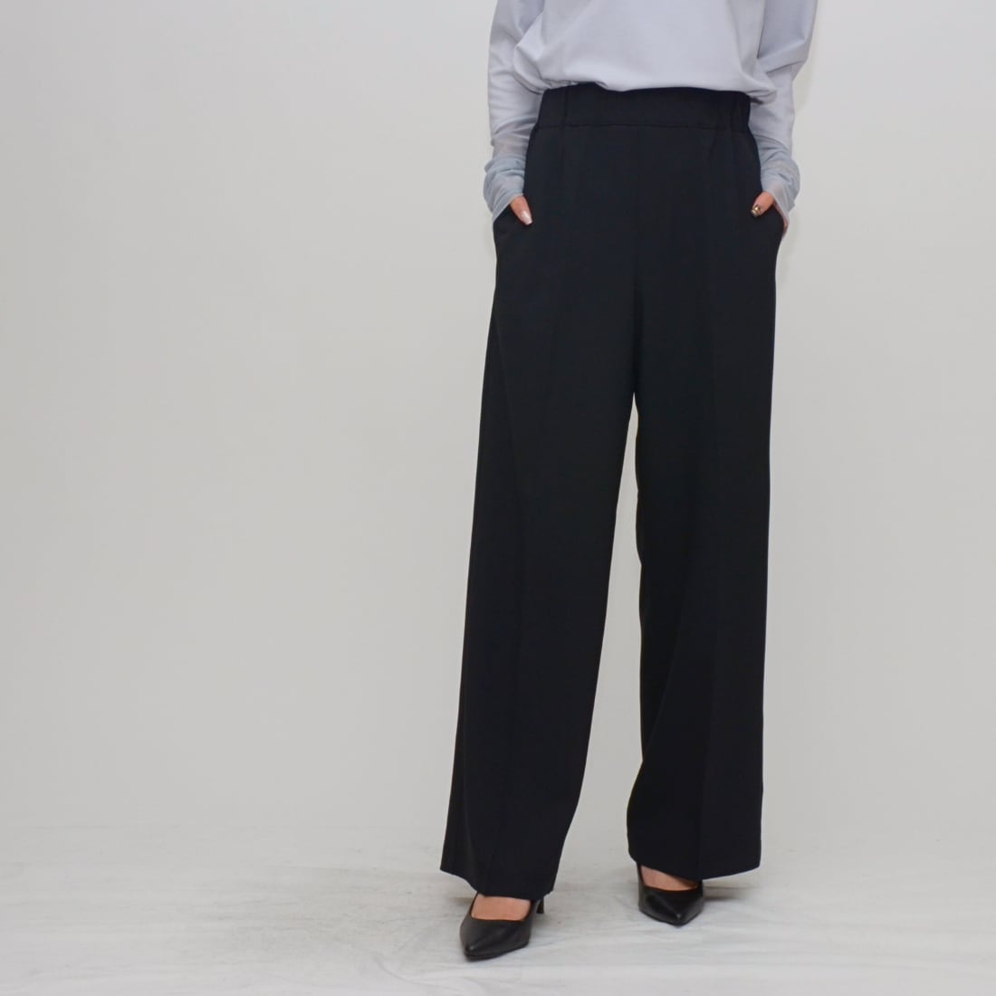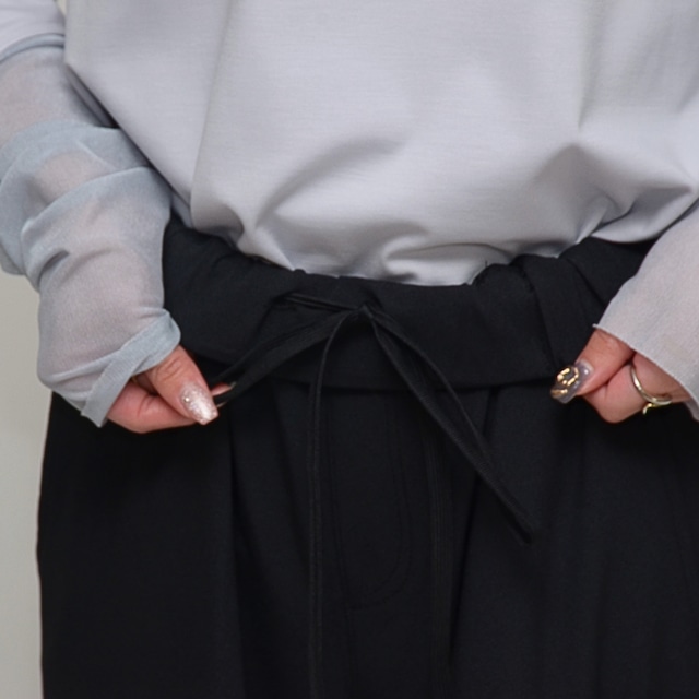【魔法の着痩せライン】イージーセミワイドパンツ - LER-2636 ブラック ‐