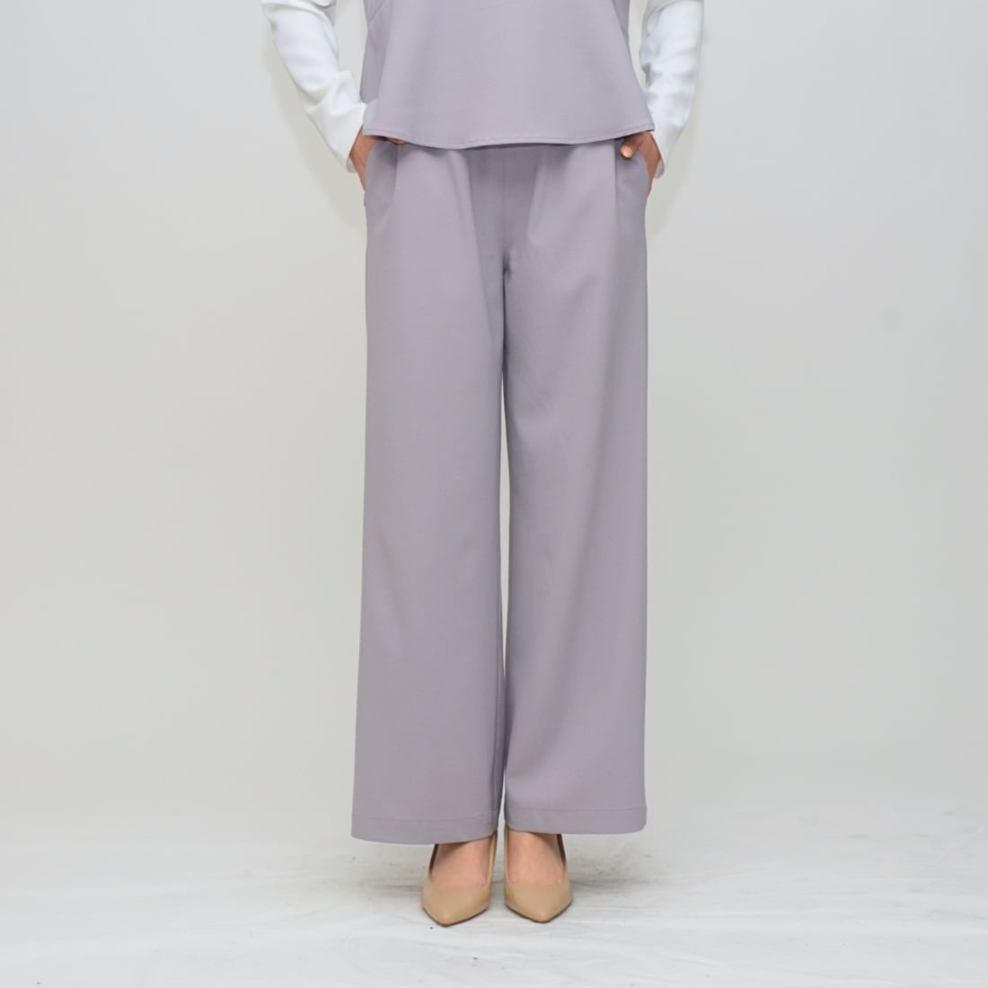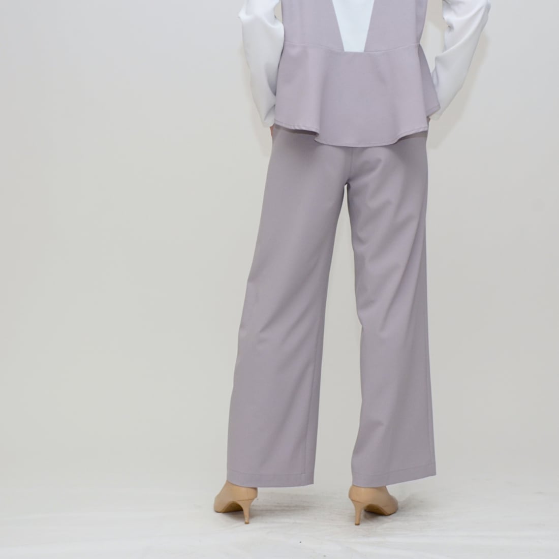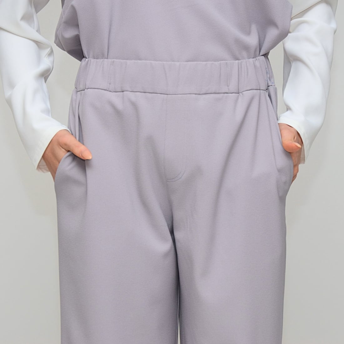 【魔法の着痩せライン】イージーセミワイドパンツ - LER-2636 グレージュ ‐