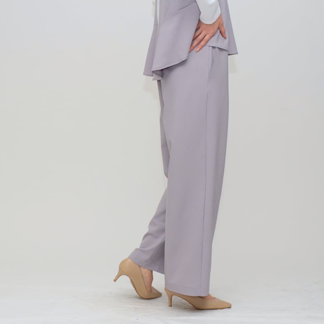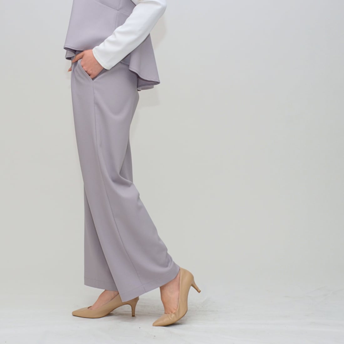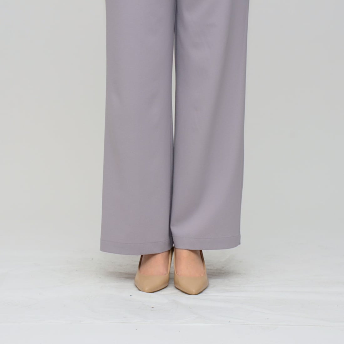 【魔法の着痩せライン】イージーセミワイドパンツ - LER-2636 グレージュ ‐