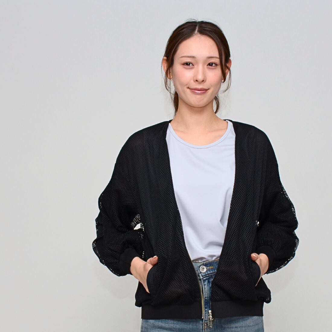 【一枚でサマになる】 超軽量・ソフトメッシュブルゾン ‐ LEI-2542 ブラック ‐