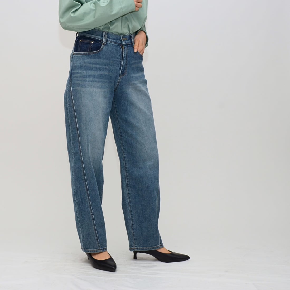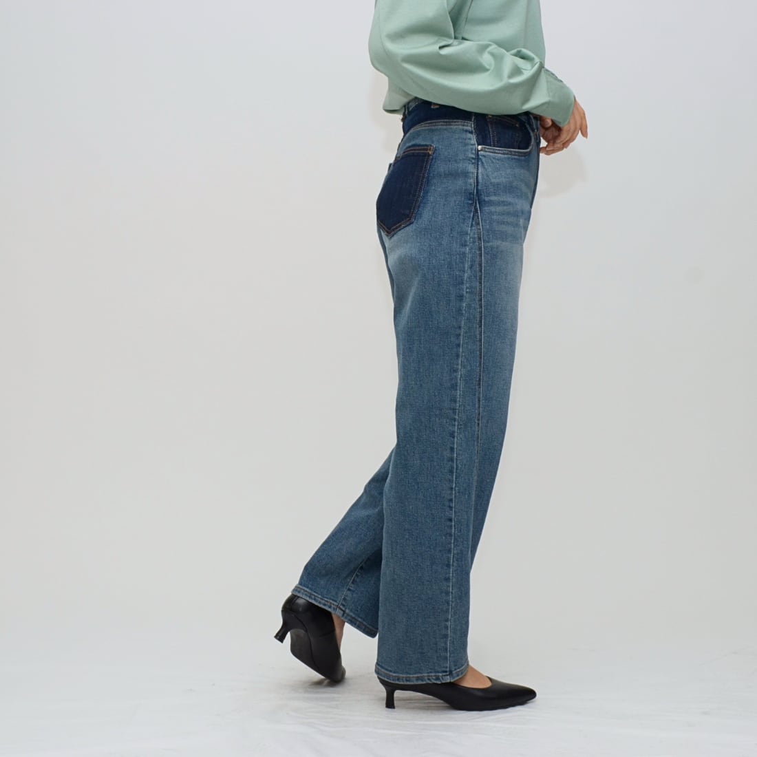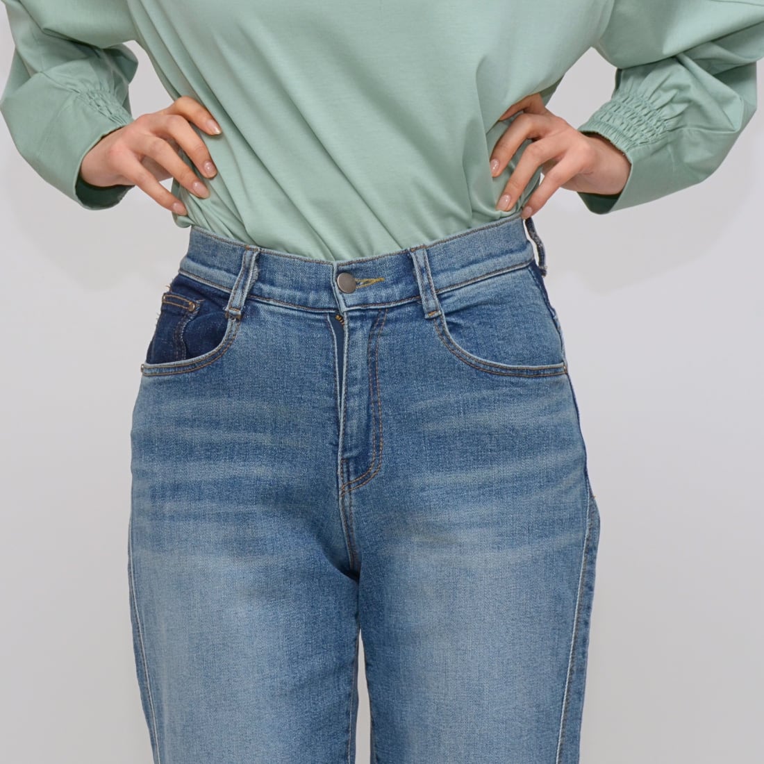 【大人のこなれデニム】 バイカラー・セミカーブデニム ‐ LERK-2616 ‐