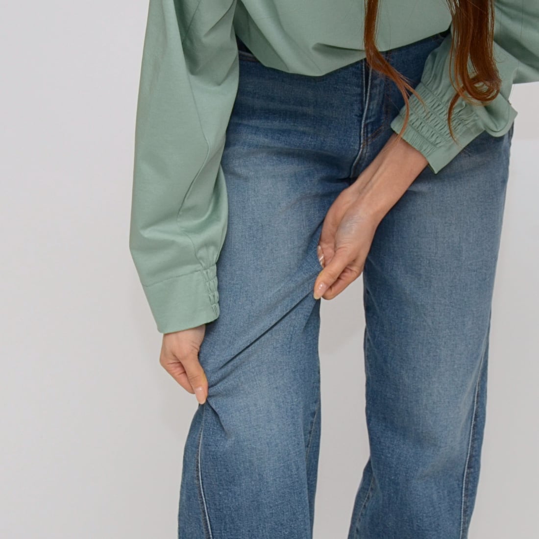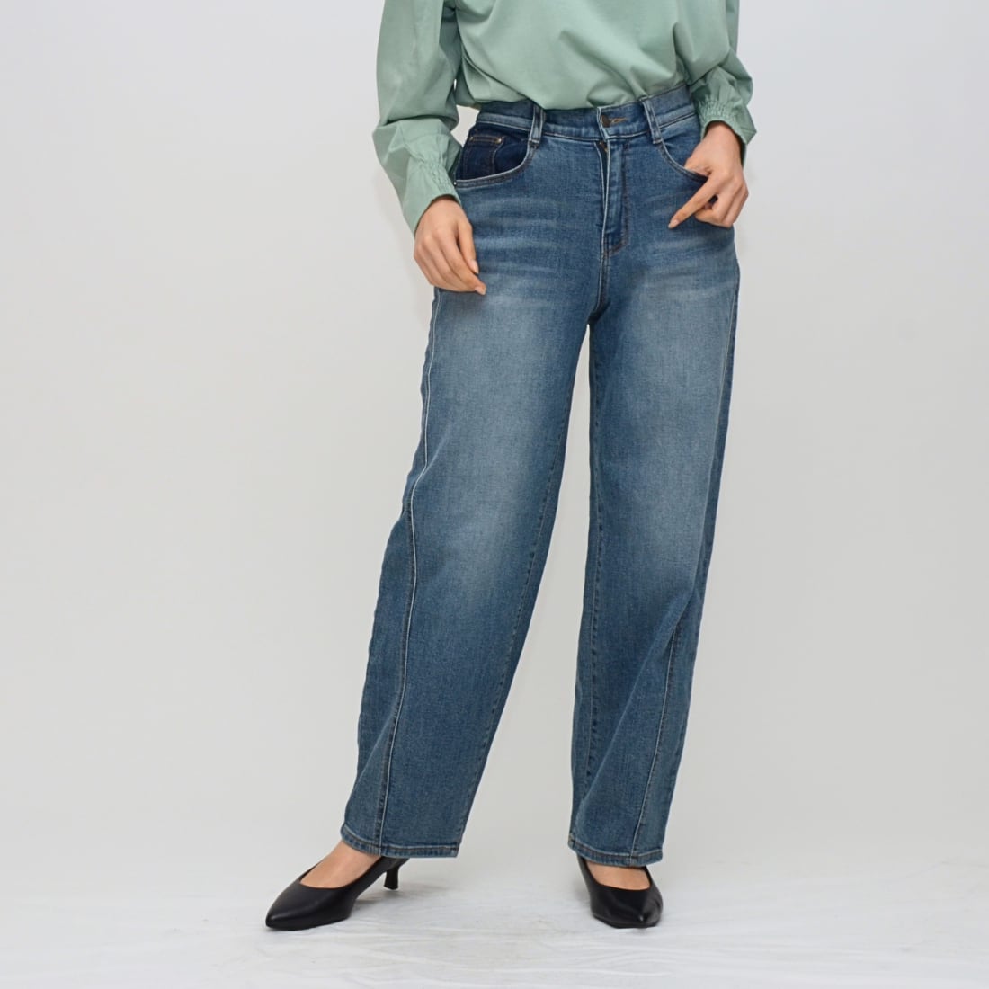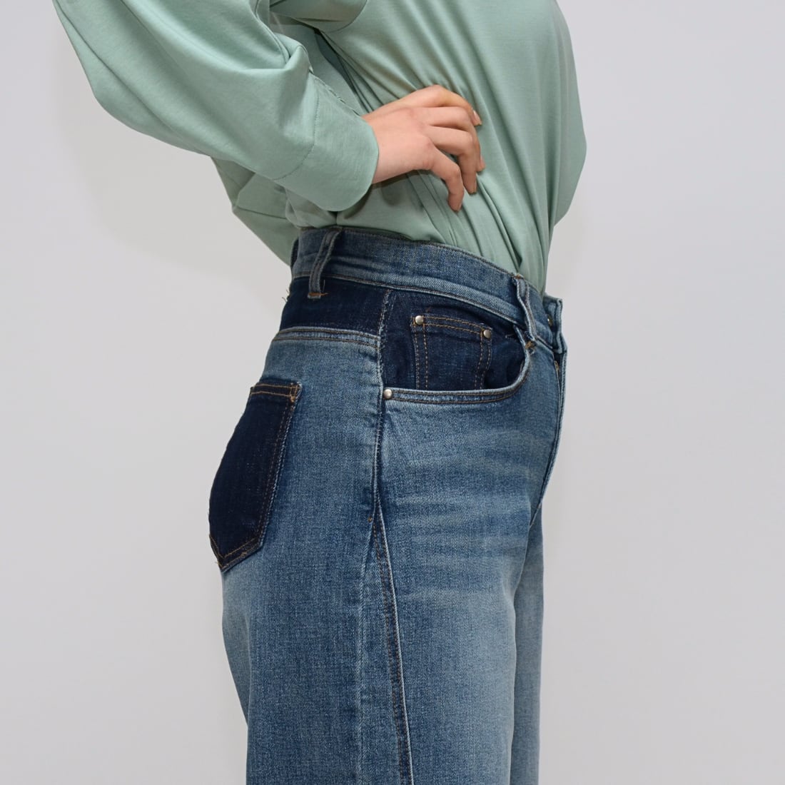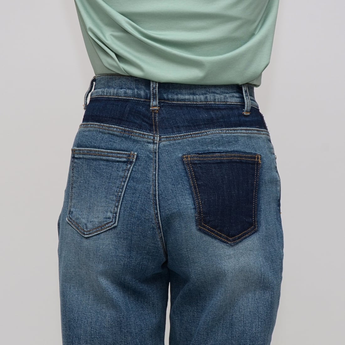 【大人のこなれデニム】 バイカラー・セミカーブデニム ‐ LERK-2616 ‐