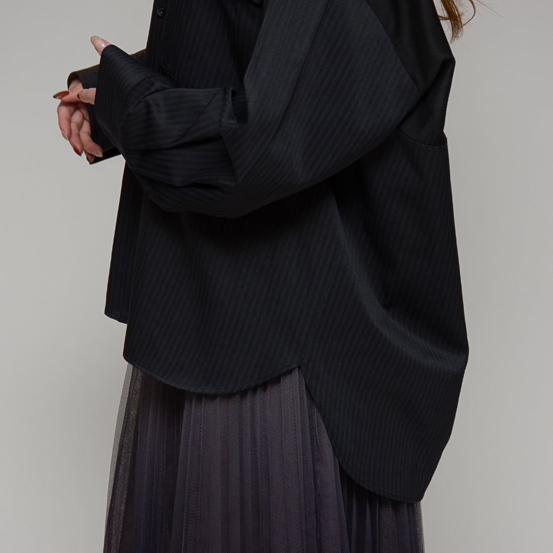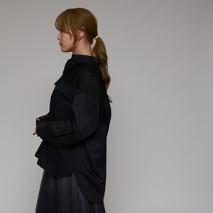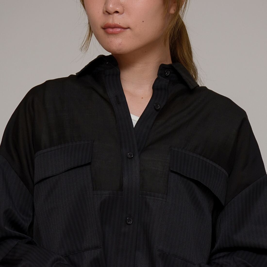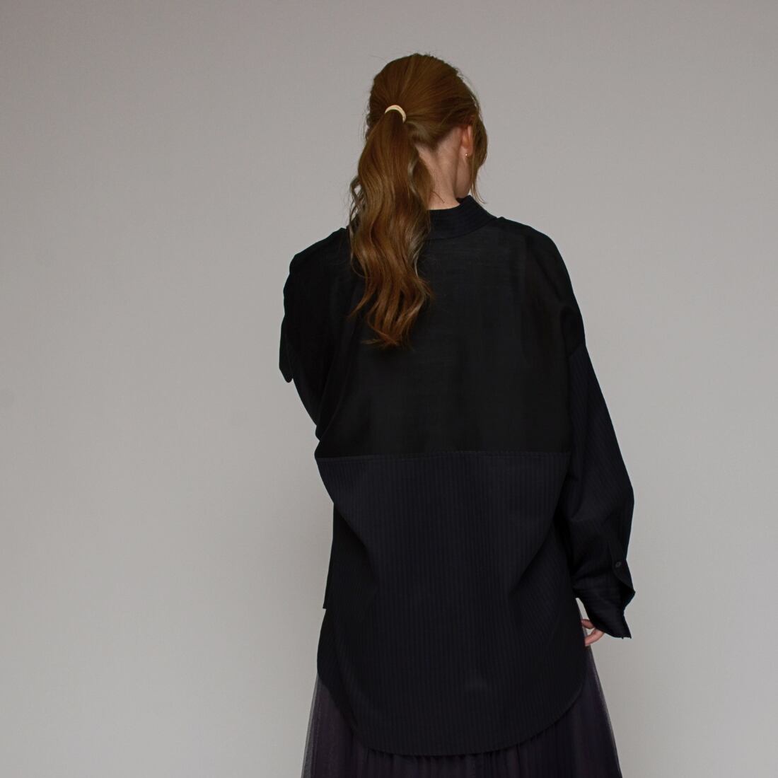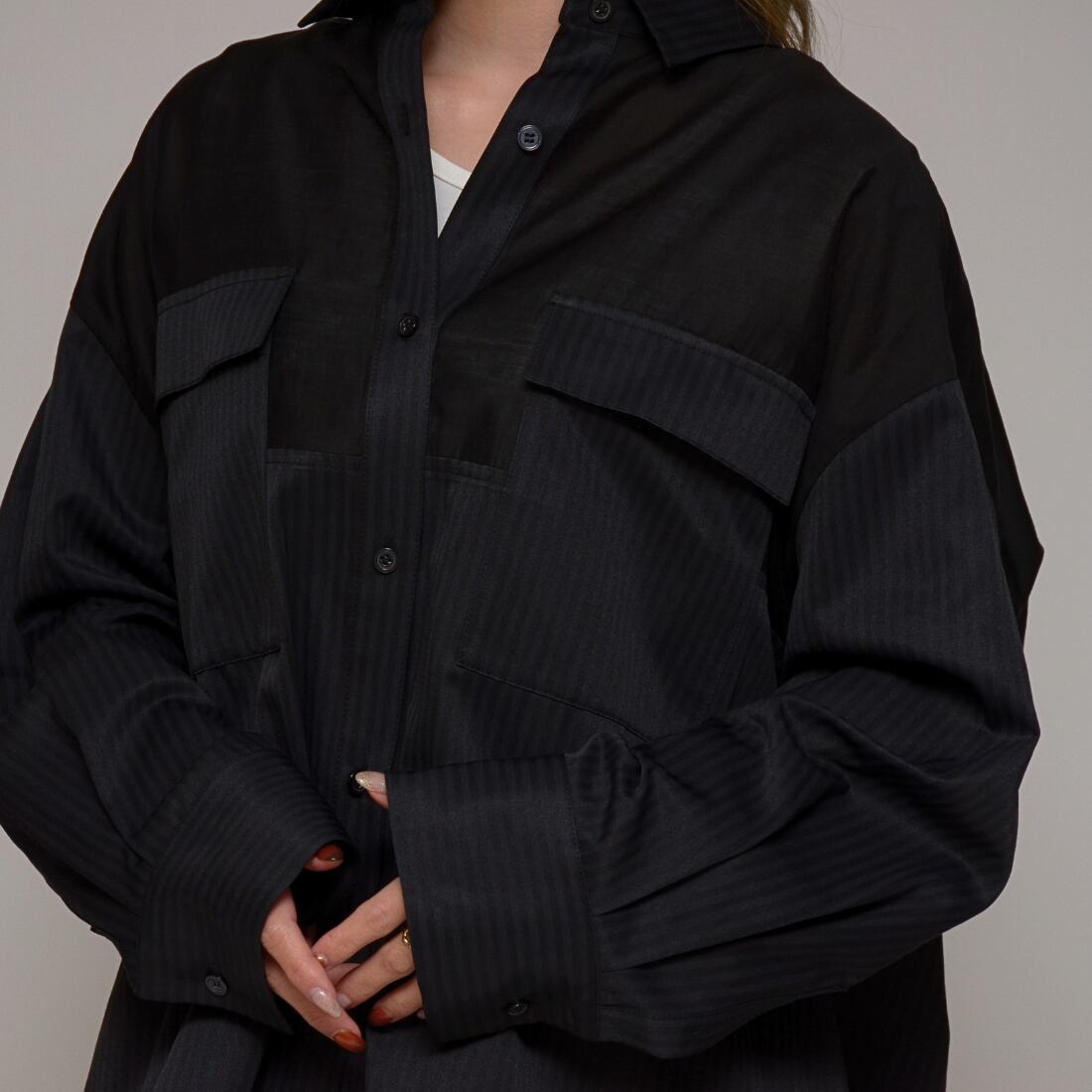 【大人の抜け感スタイル】 異素材コンビ・シアーロングシャツ ‐ LEI-2635 ブラック ‐