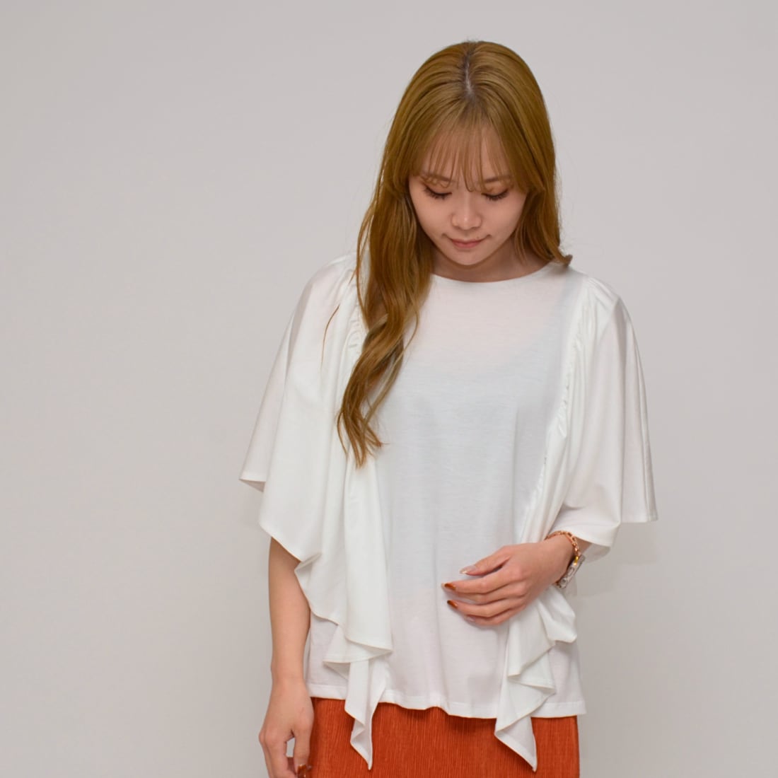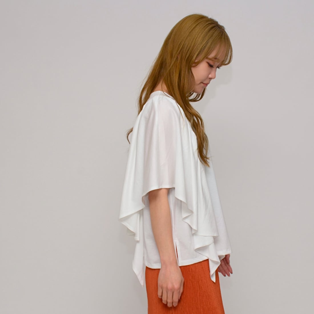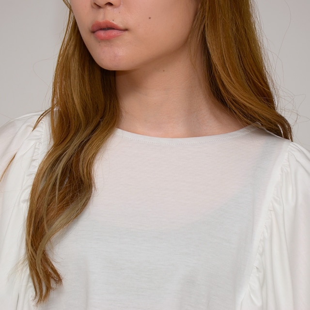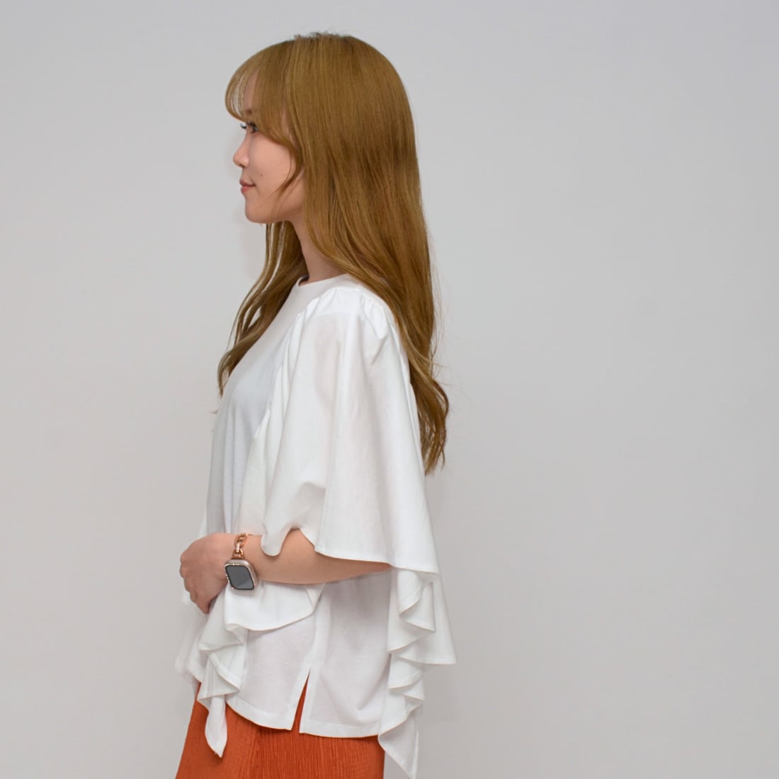 【ブラウス見えTシャツ】 シルケット綿・袖フリルプルオーバー ‐ LEO-2608 オフ ‐