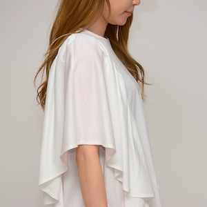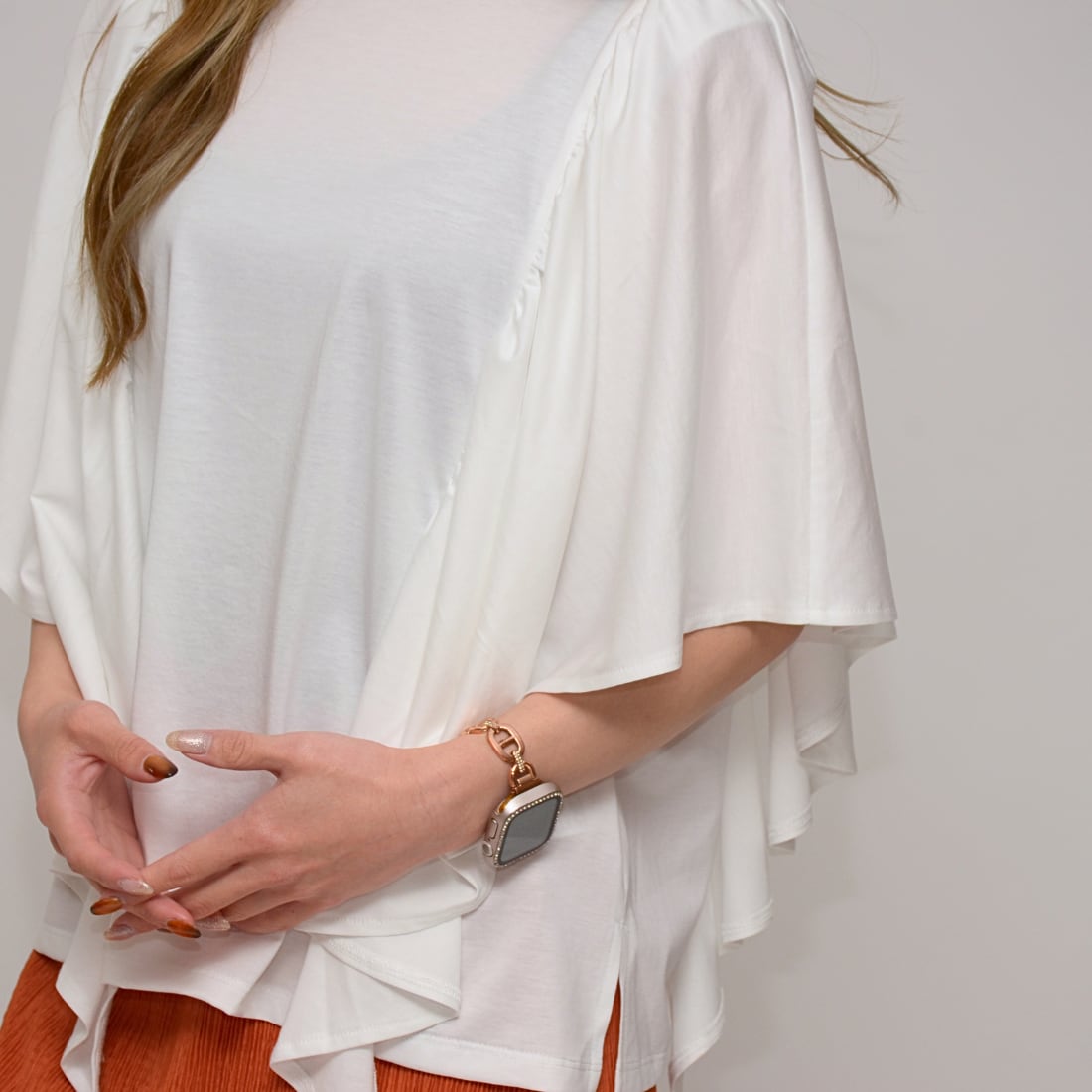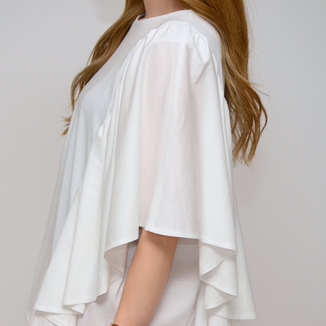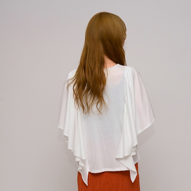 【ブラウス見えTシャツ】 シルケット綿・袖フリルプルオーバー ‐ LEO-2608 オフ ‐