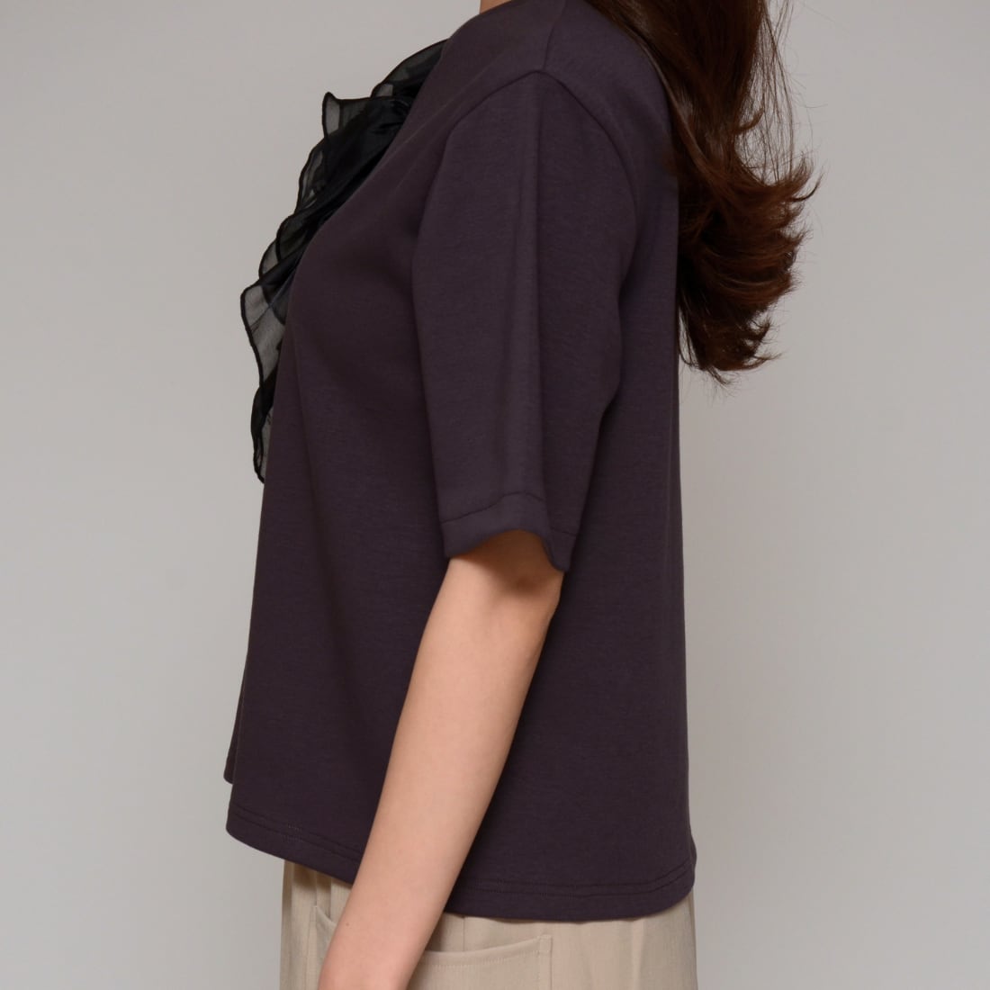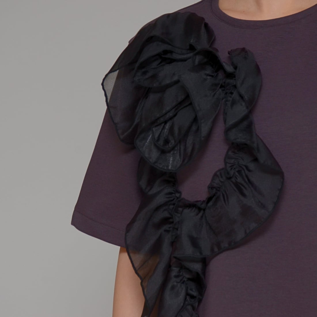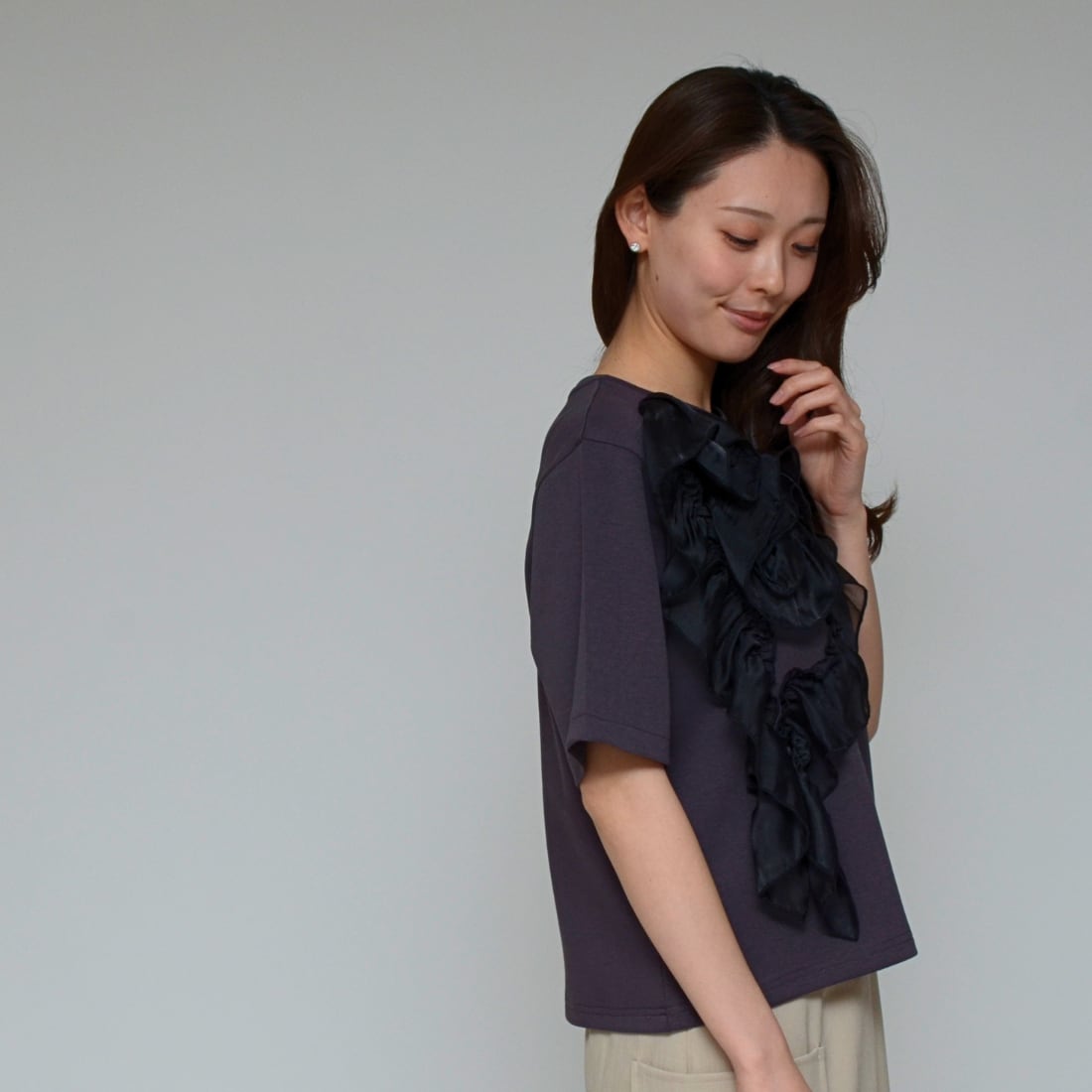 【主役級の一枚】 オーガンジーコサージュ・ストレッチT ‐ LEO-2614 チャコール ‐