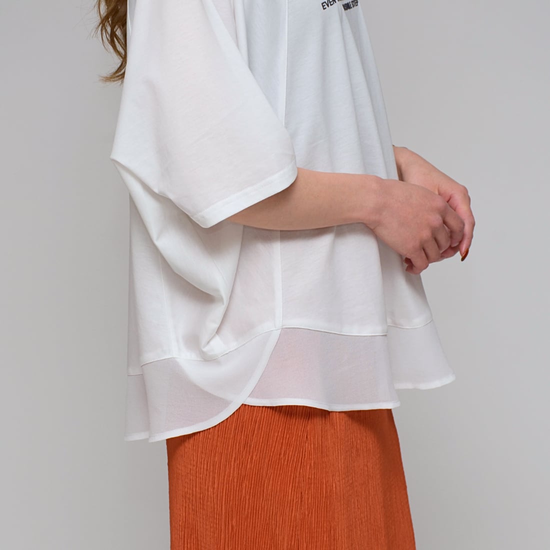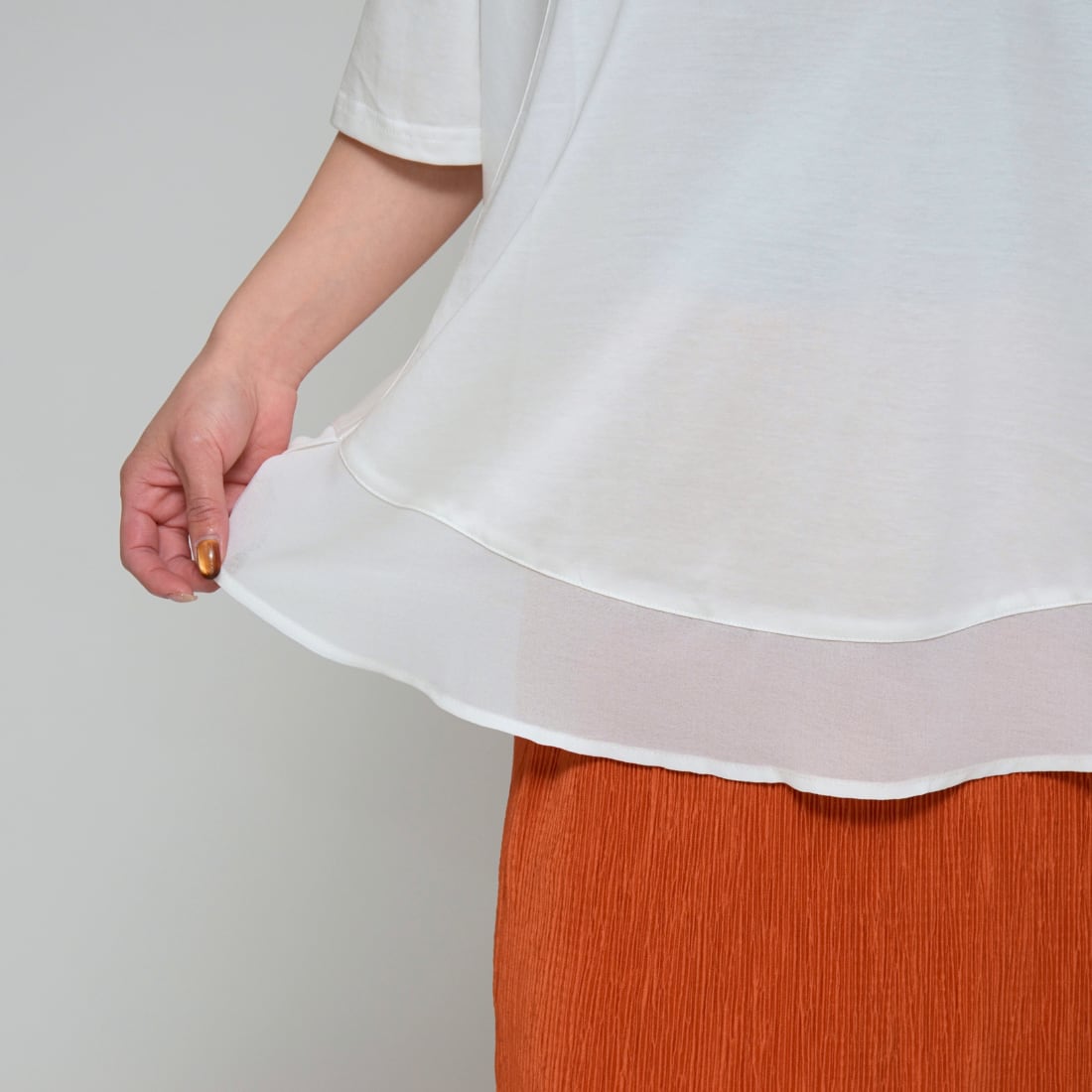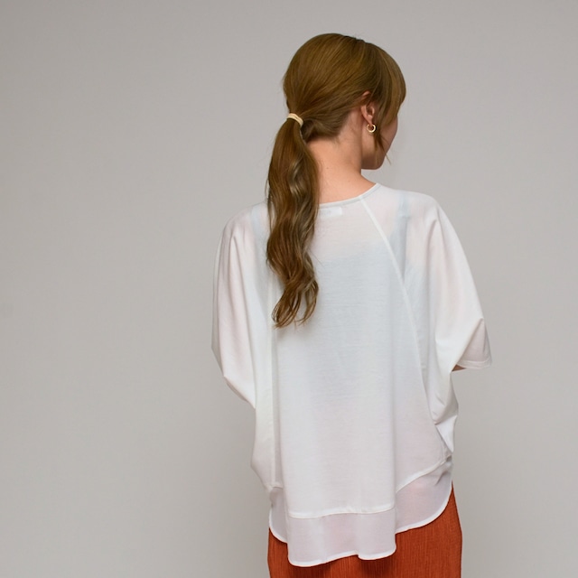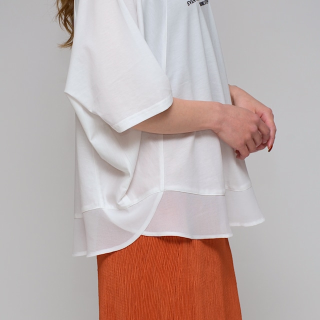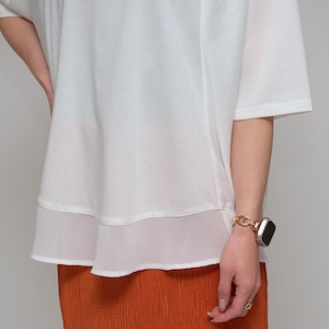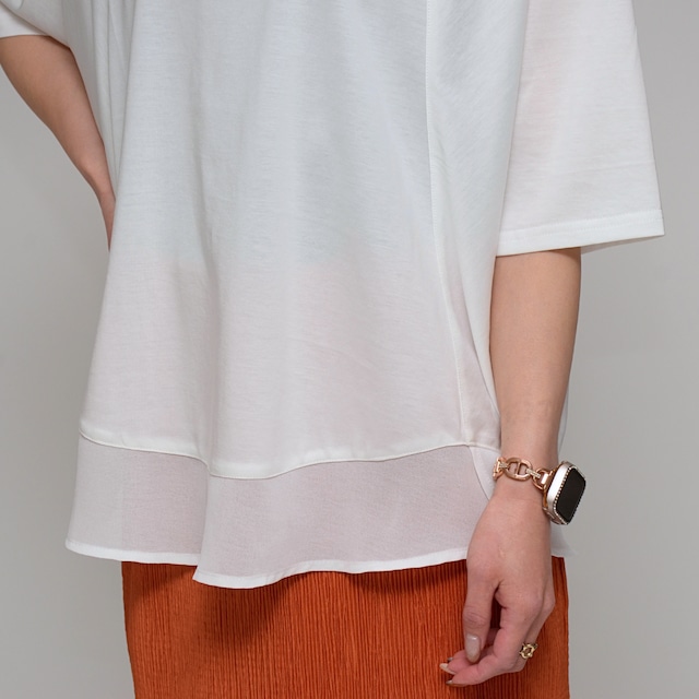 【異素材で魅せる抜け感】 シルケット綿・シフォンヘムTシャツ ‐ LEO-2621 オフ ‐