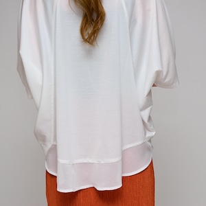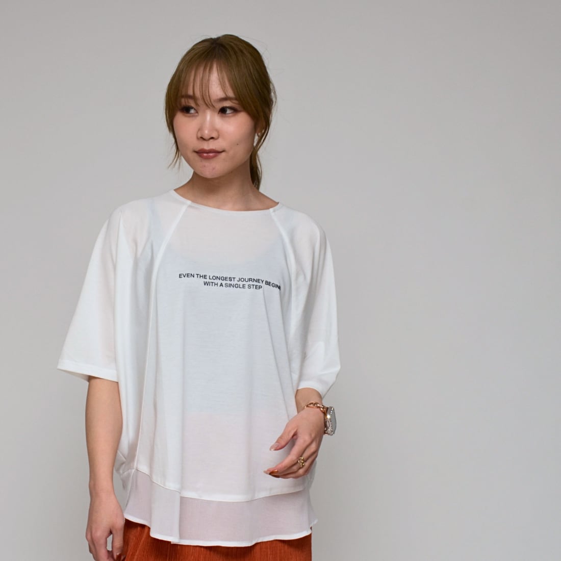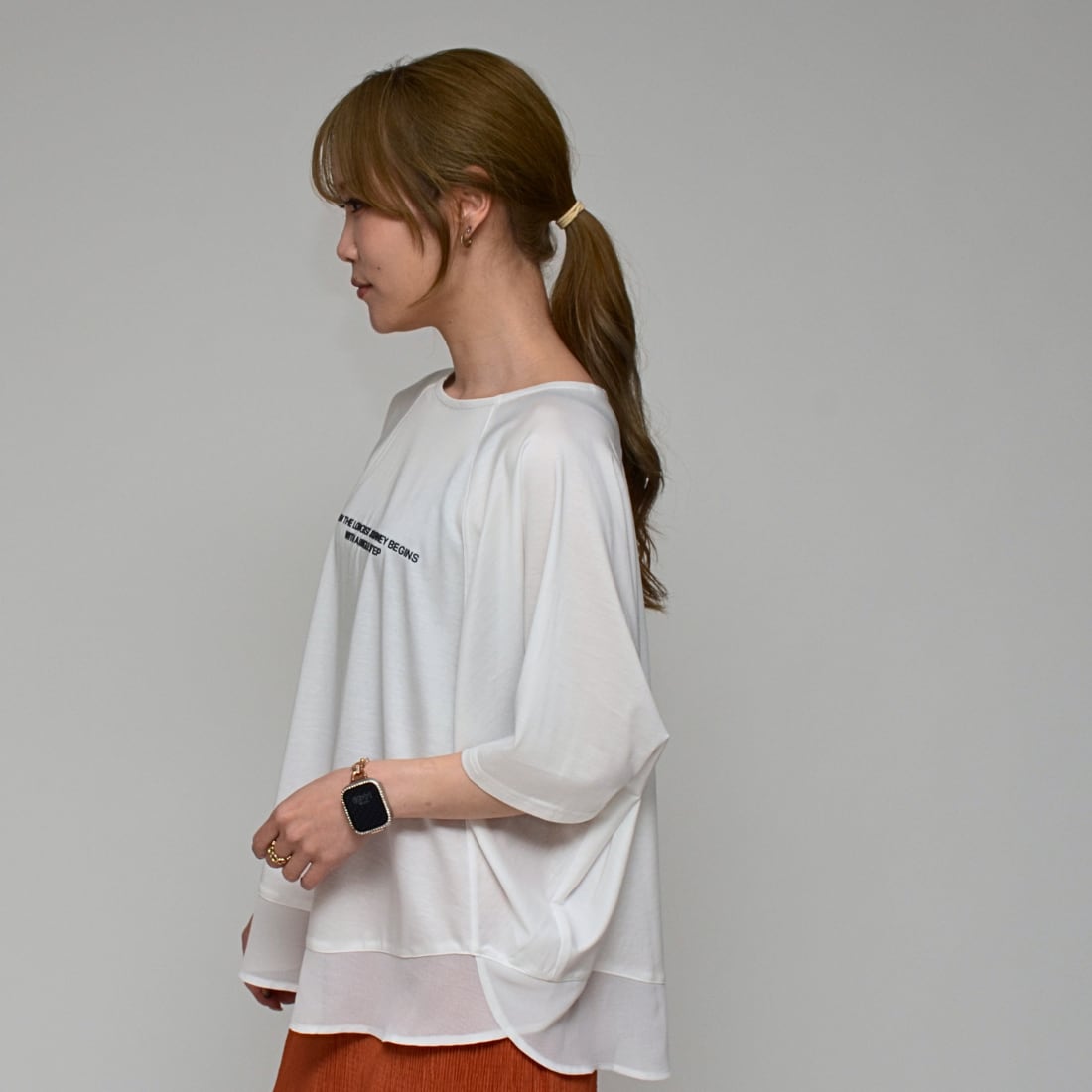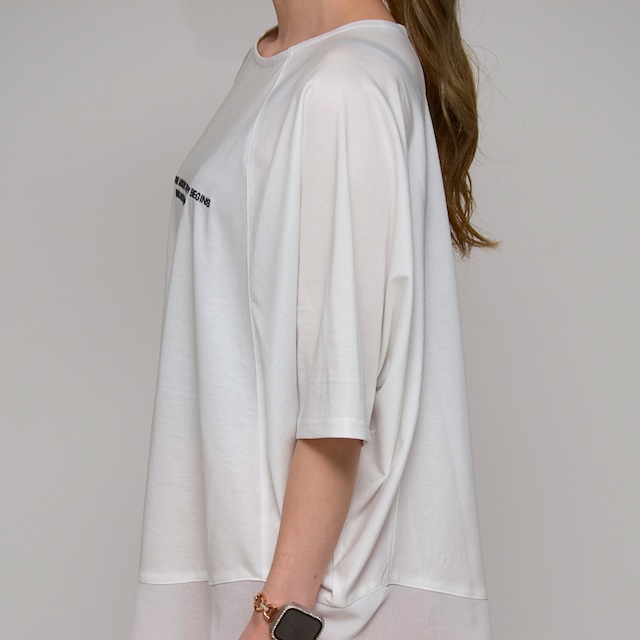 【異素材で魅せる抜け感】 シルケット綿・シフォンヘムTシャツ ‐ LEO-2621 オフ ‐