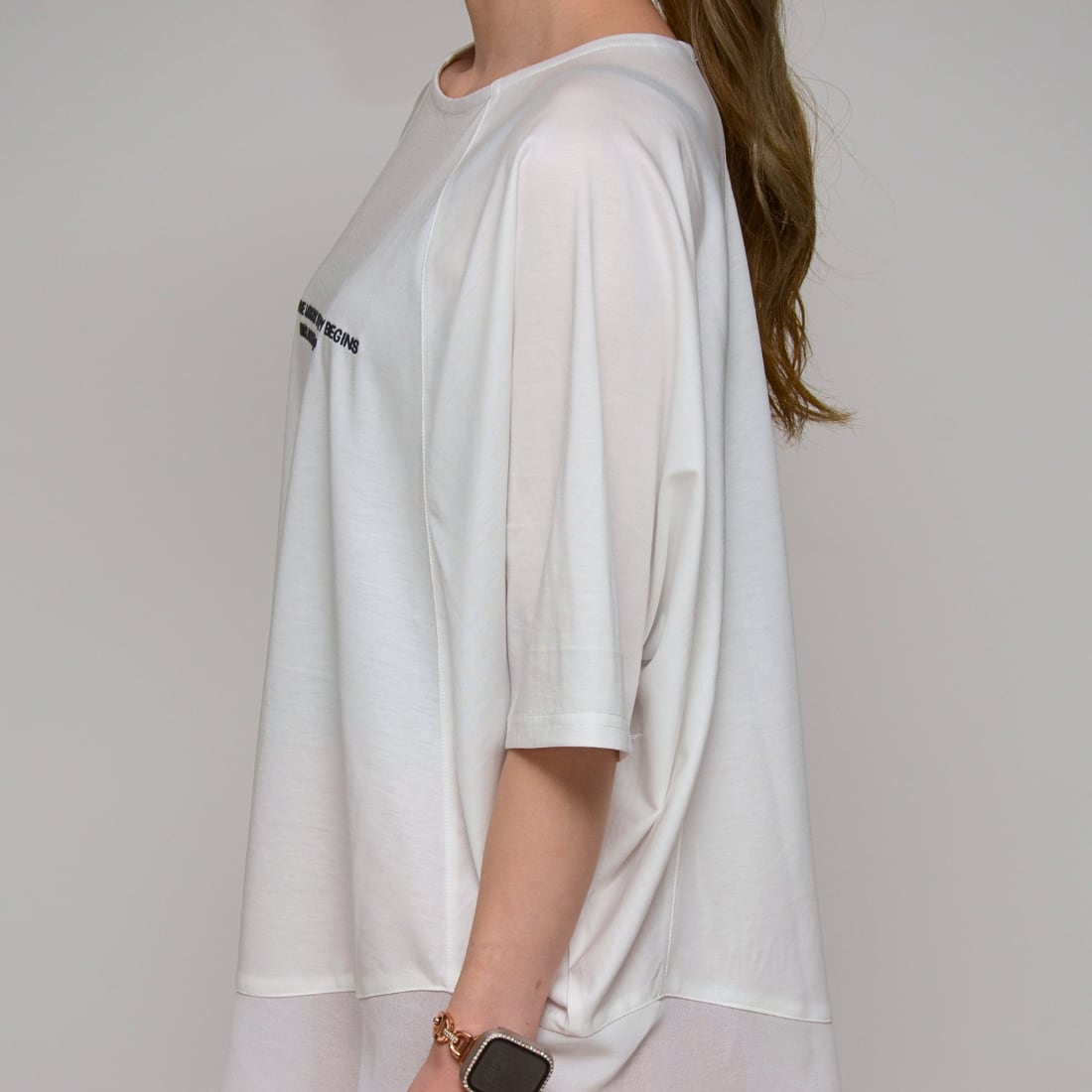 五分袖で二の腕もカバー。