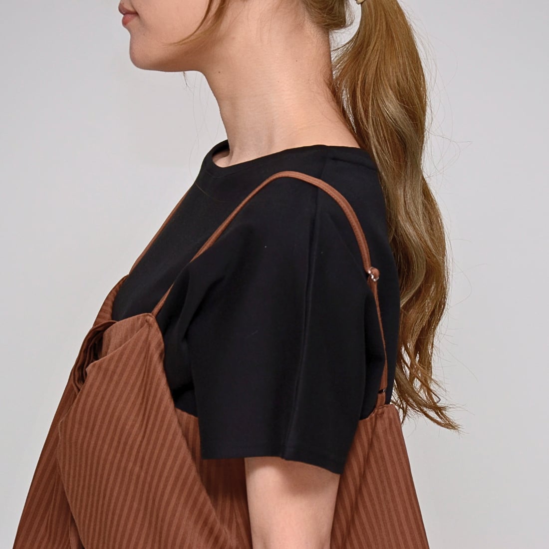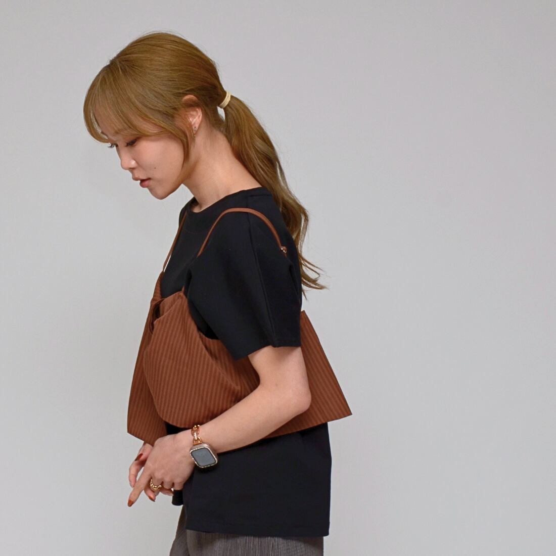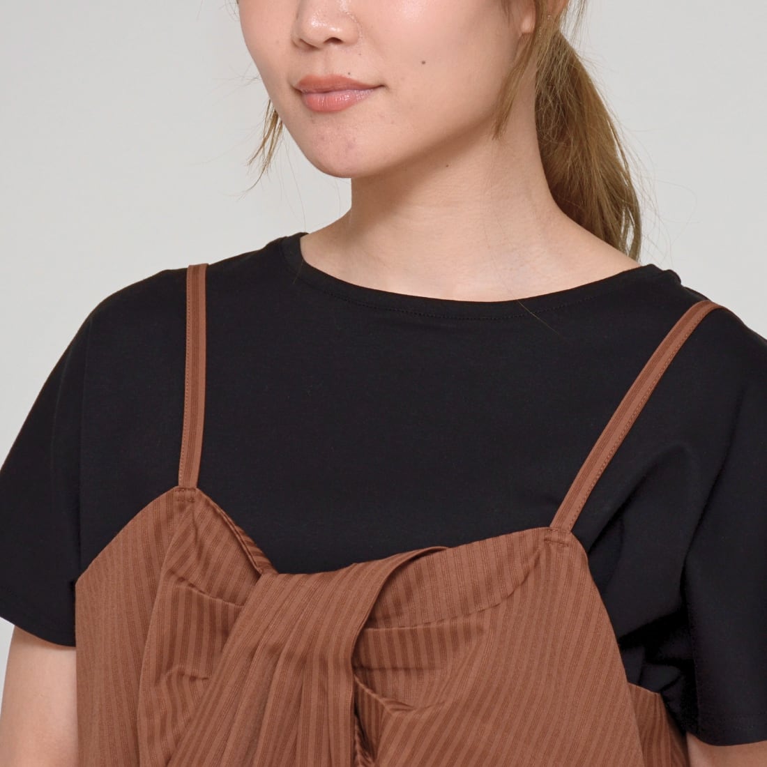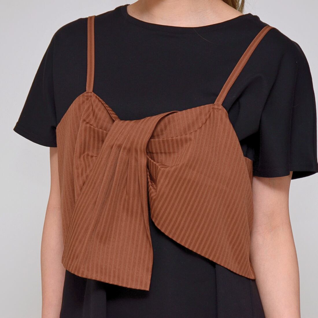 【トレンドをパッと完結】 ビスチェ+Tシャツ・セット ‐ LEO-2629 ブラック×ブラウン ‐