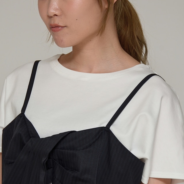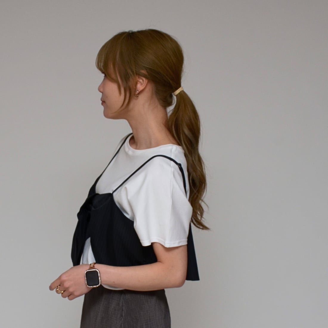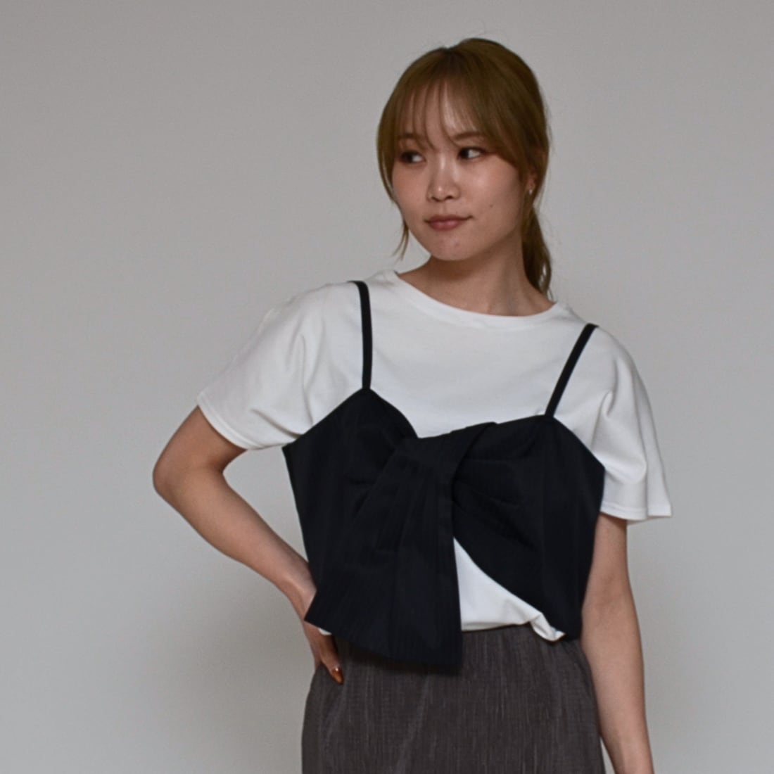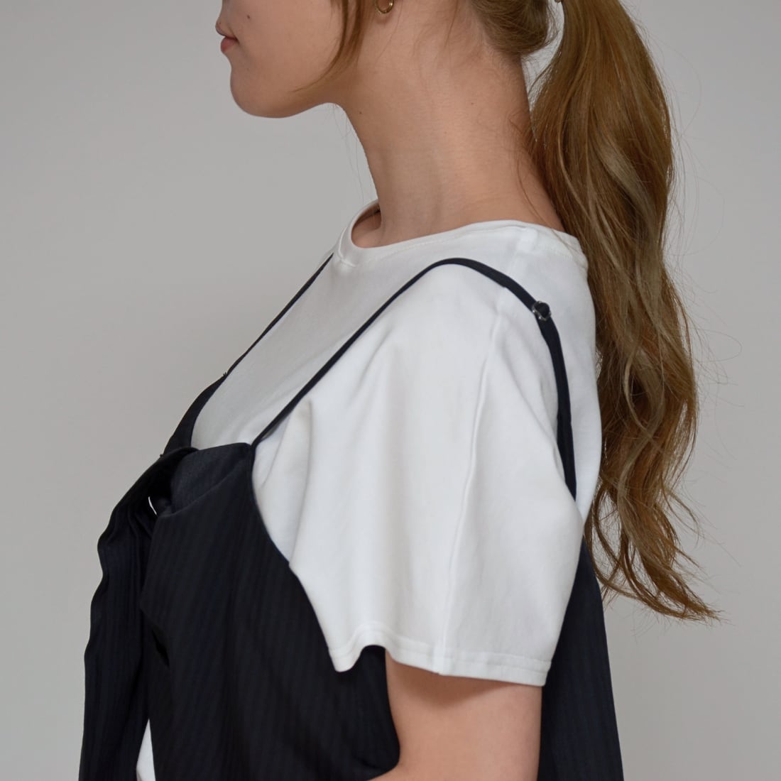 【トレンドをパッと完結】 ビスチェ+Tシャツ・セット ‐ LEO-2629 オフ×ブラック ‐