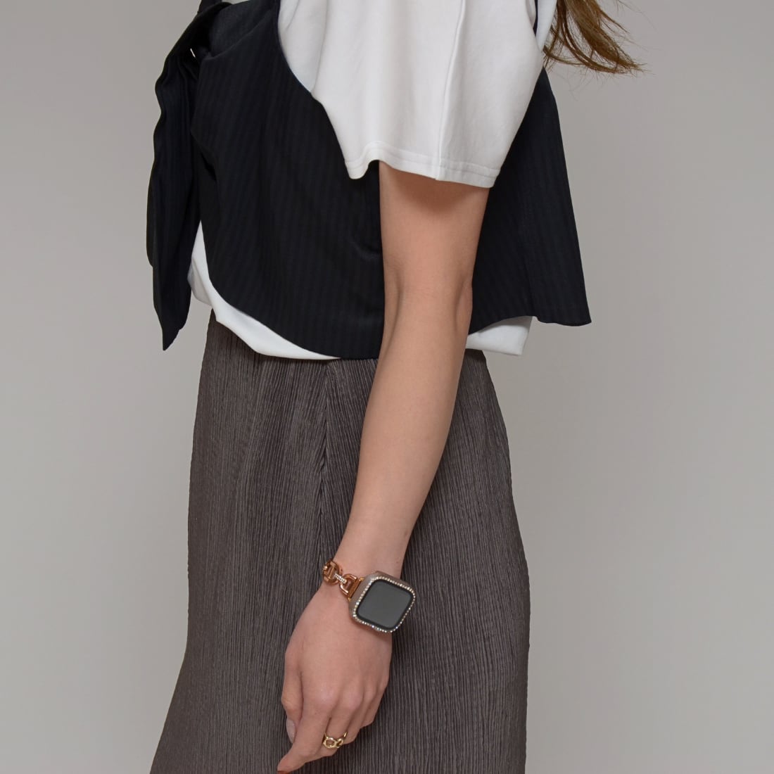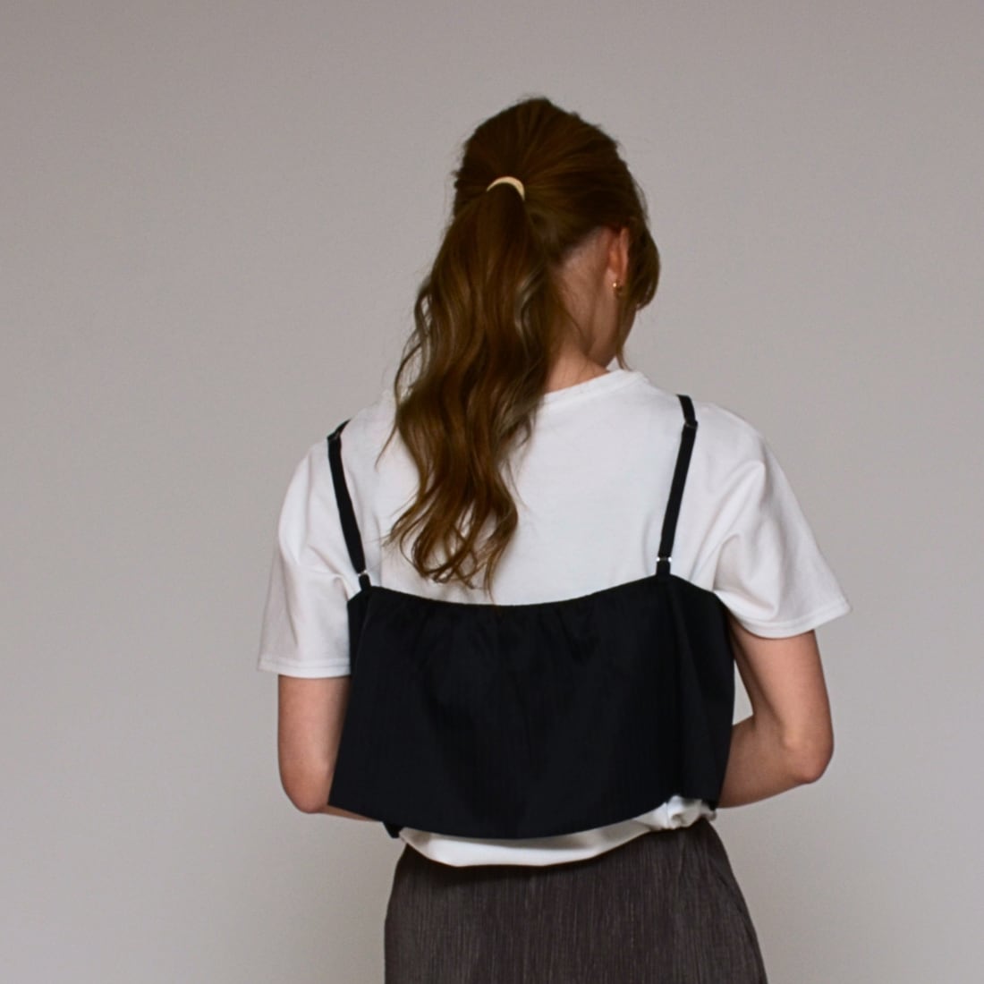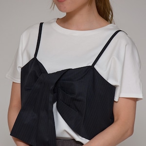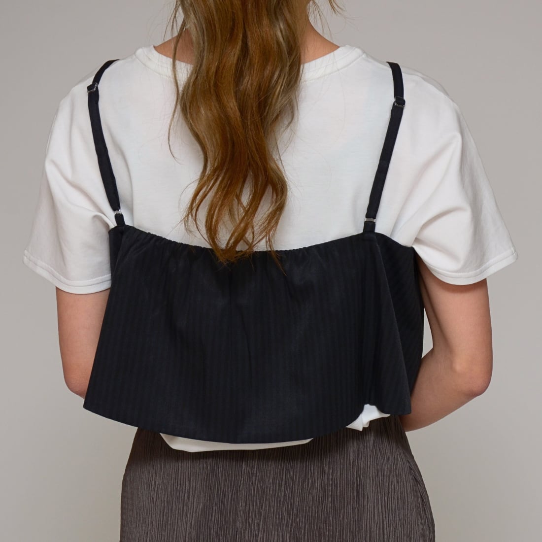 【トレンドをパッと完結】 ビスチェ+Tシャツ・セット ‐ LEO-2629 オフ×ブラック ‐