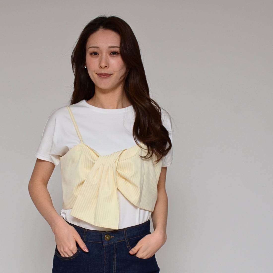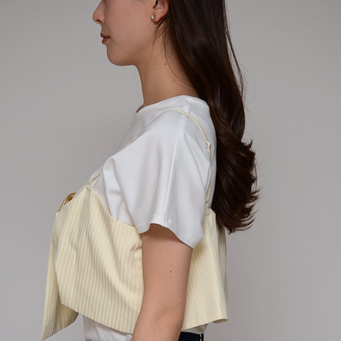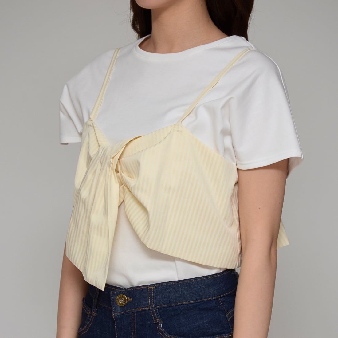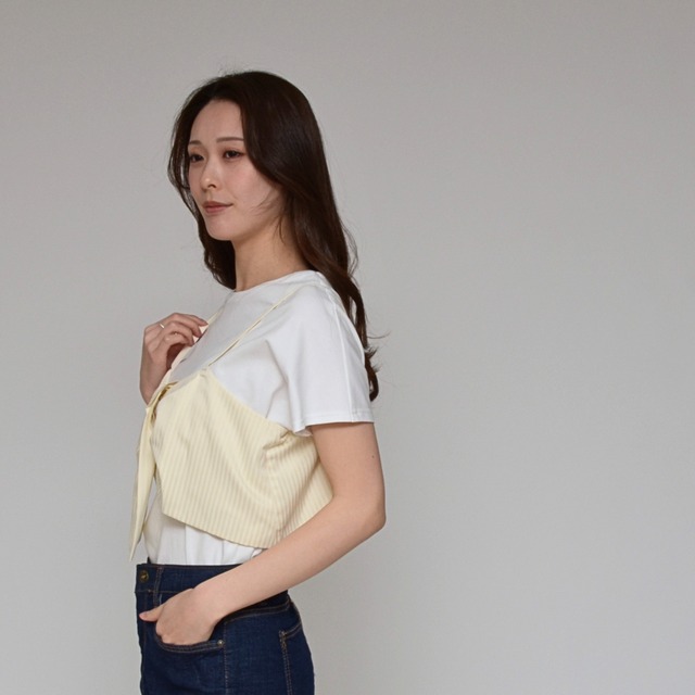 【トレンドをパッと完結】 ビスチェ+Tシャツ・セット ‐ LEO-2629 オフ×ベージュ ‐