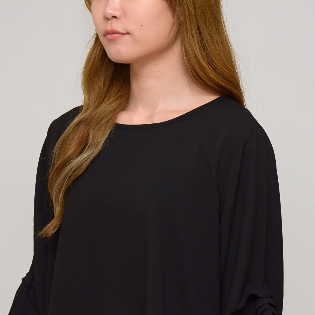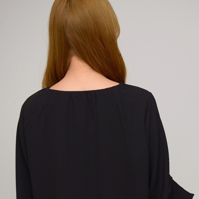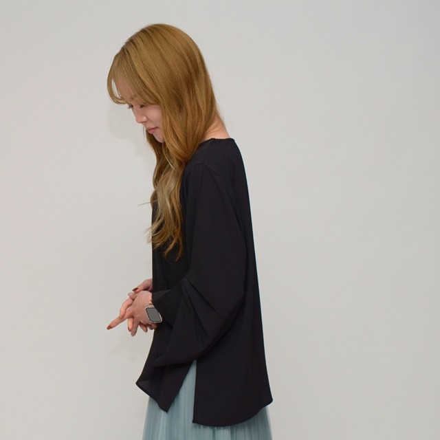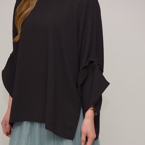 【オンオフ兼用】 袖タック・エステルボイルブラウス ‐ LER-2609 ブラック ‐