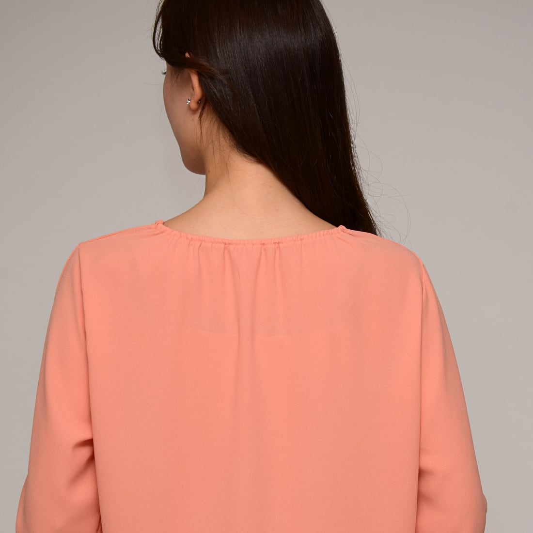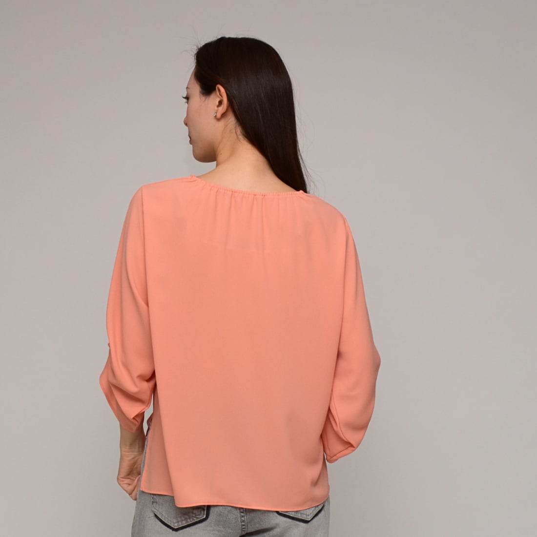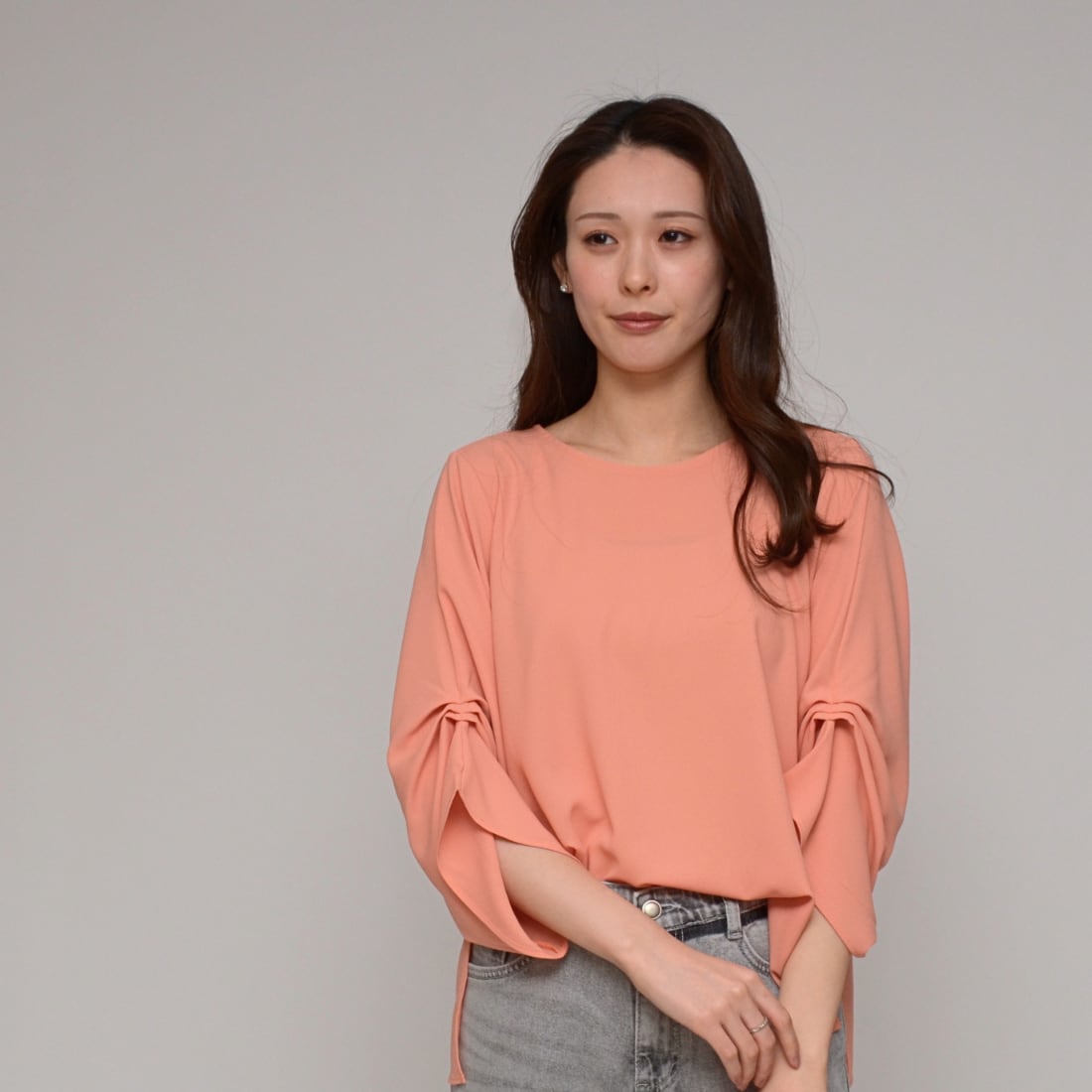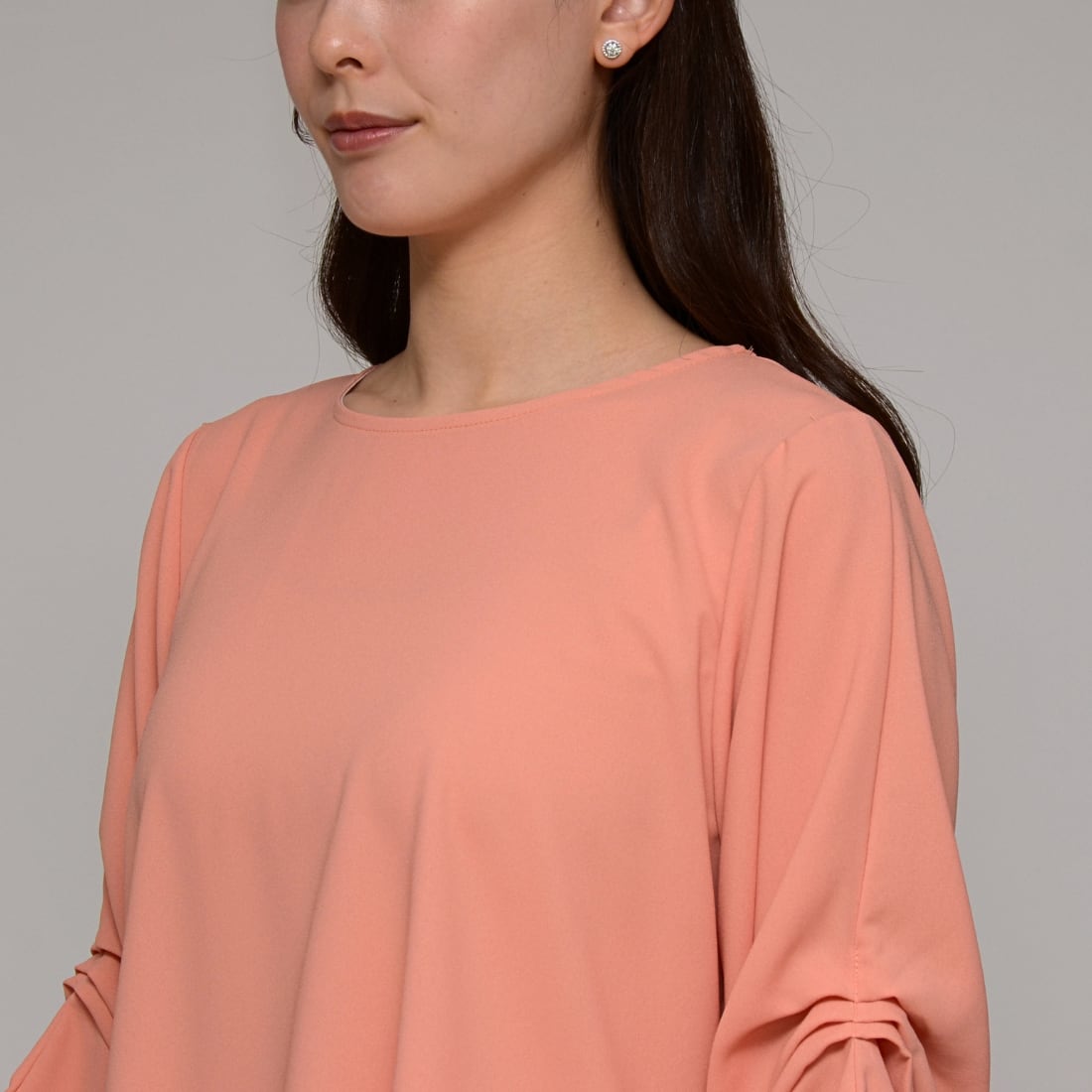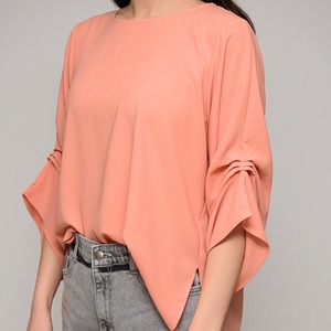 【オンオフ兼用】 袖タック・エステルボイルブラウス ‐ LER-2609 オレンジ ‐