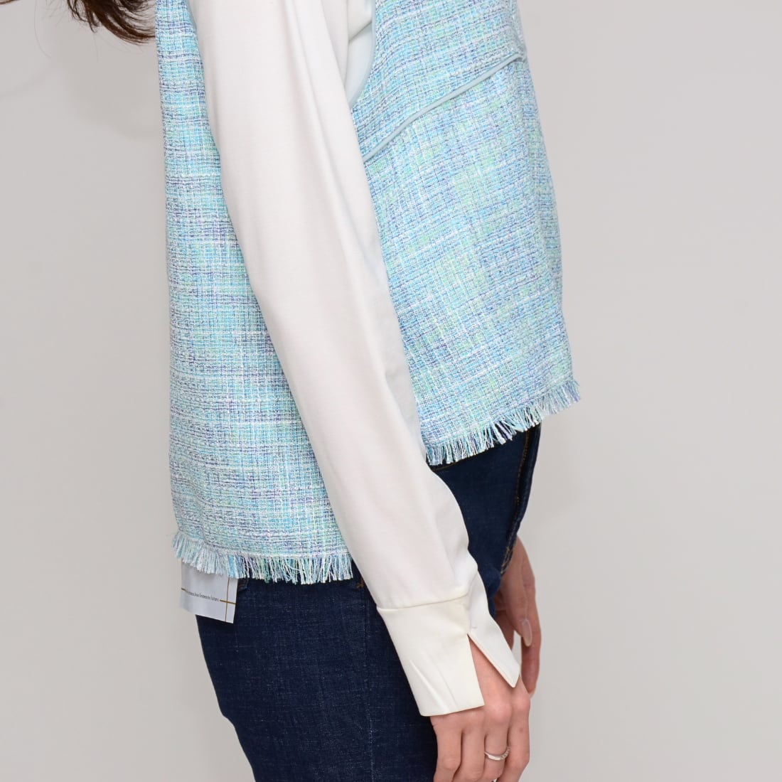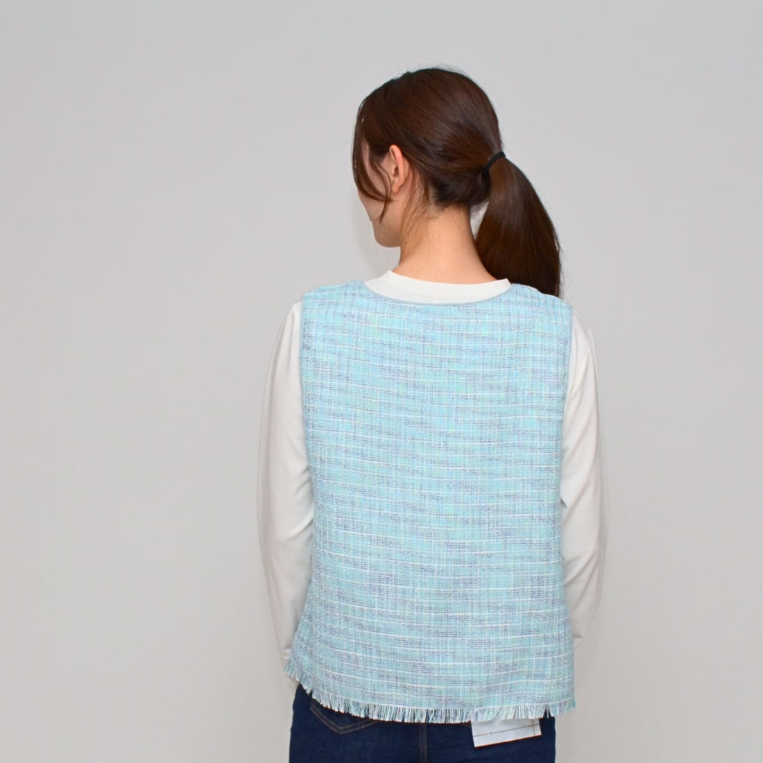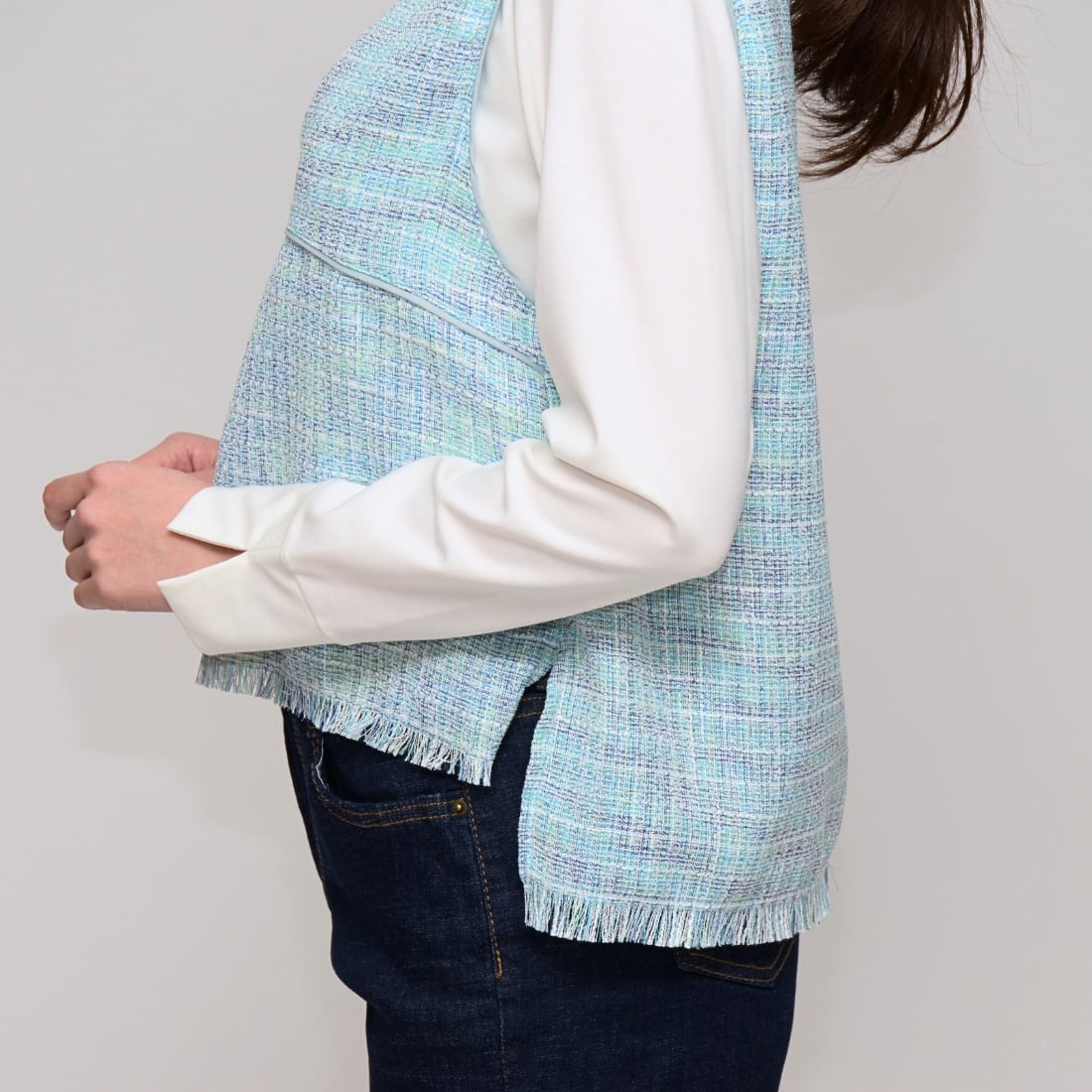 【夏のプラスワン】 サマーツイード・フリンジベスト ‐ LER-2627 ミント系 ‐