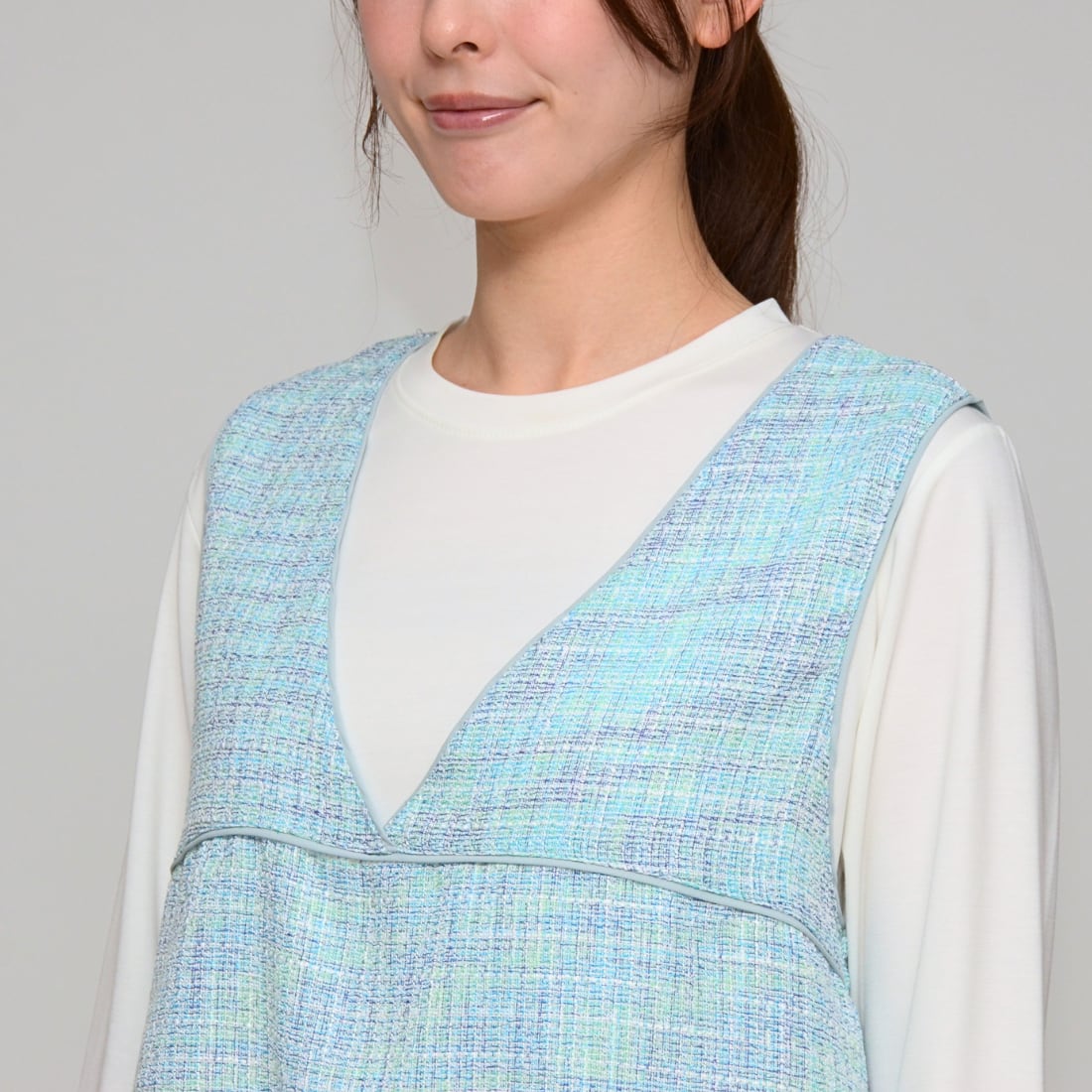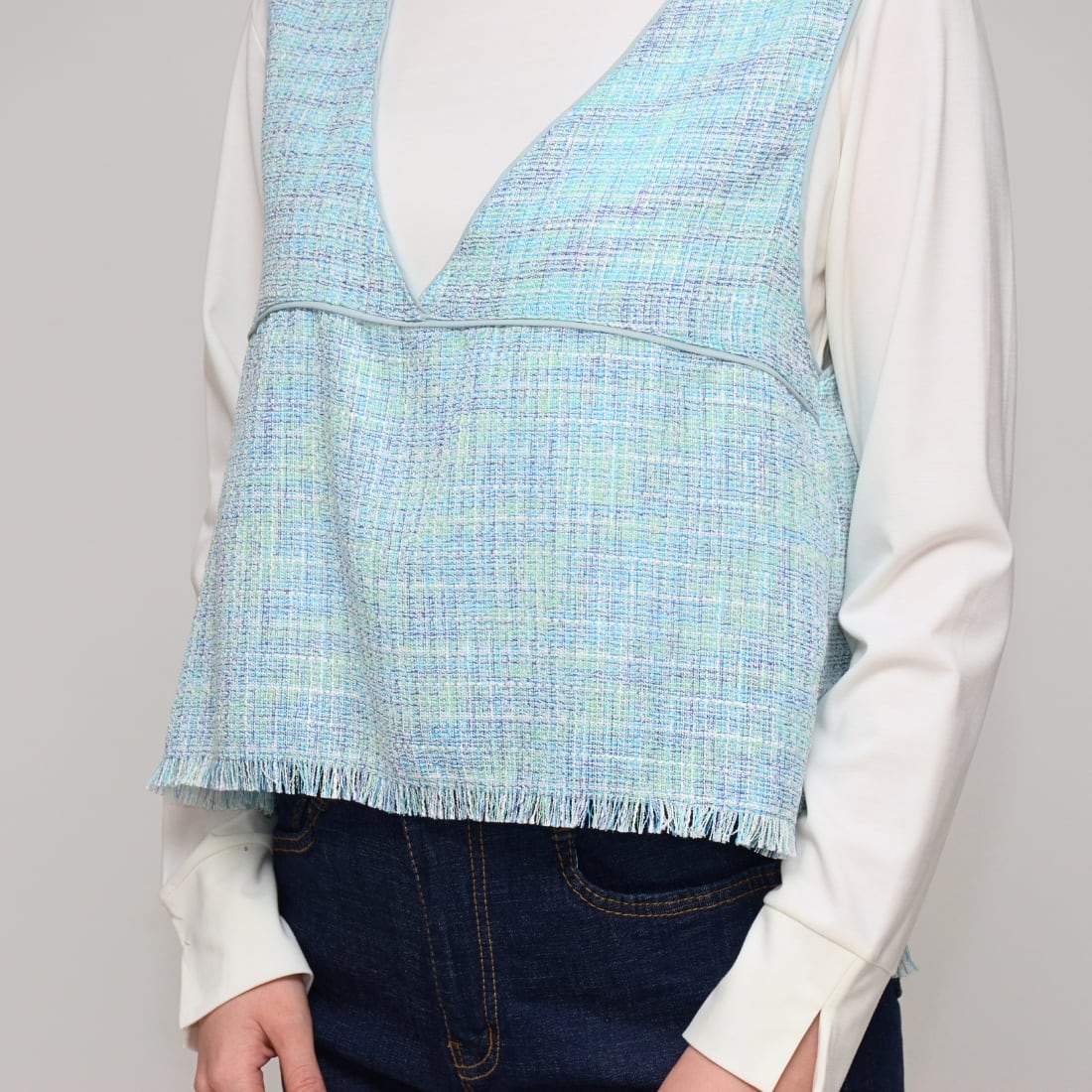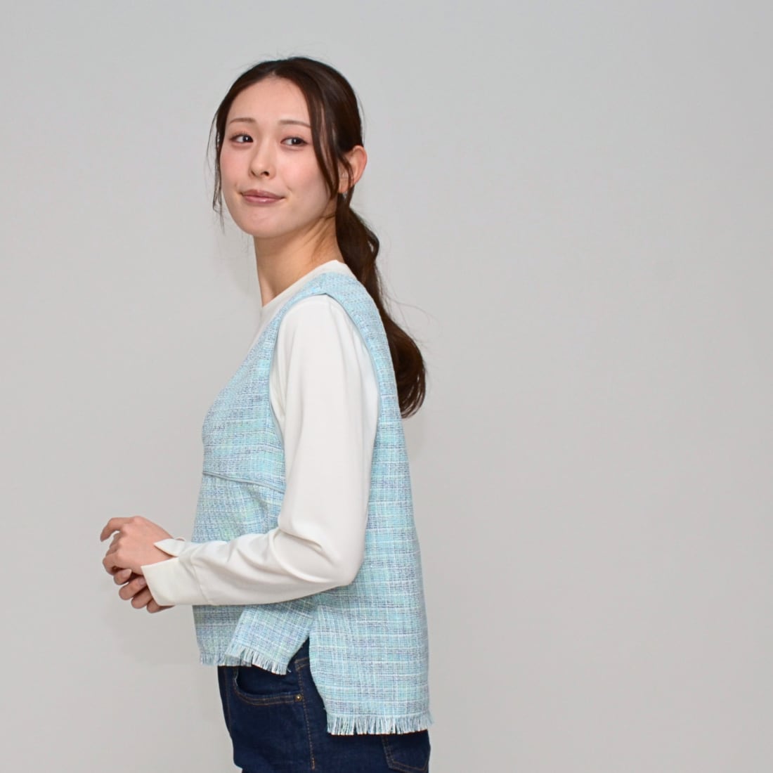 【夏のプラスワン】 サマーツイード・フリンジベスト ‐ LER-2627 ミント系 ‐