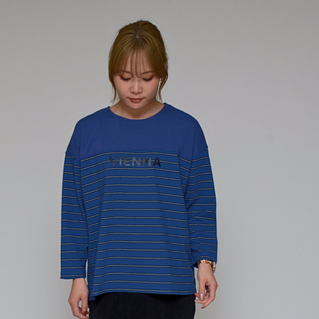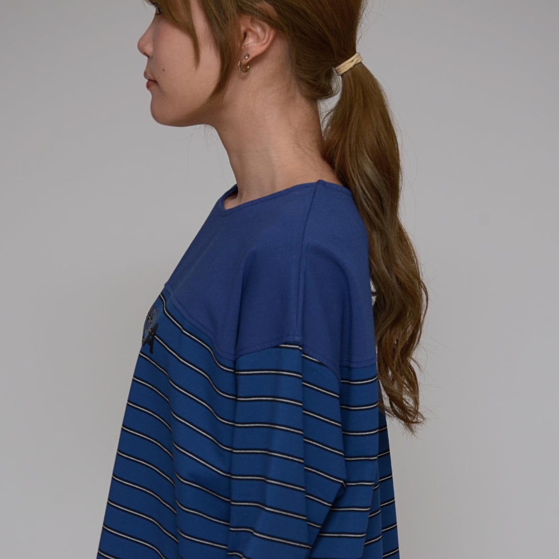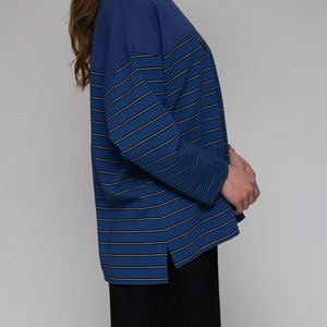 【異素材コンビ】 ドライポンチ×ボーダープルオーバー ‐ LER-2628 ブルー ‐