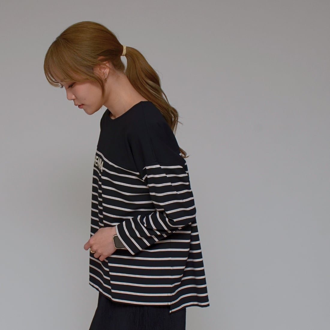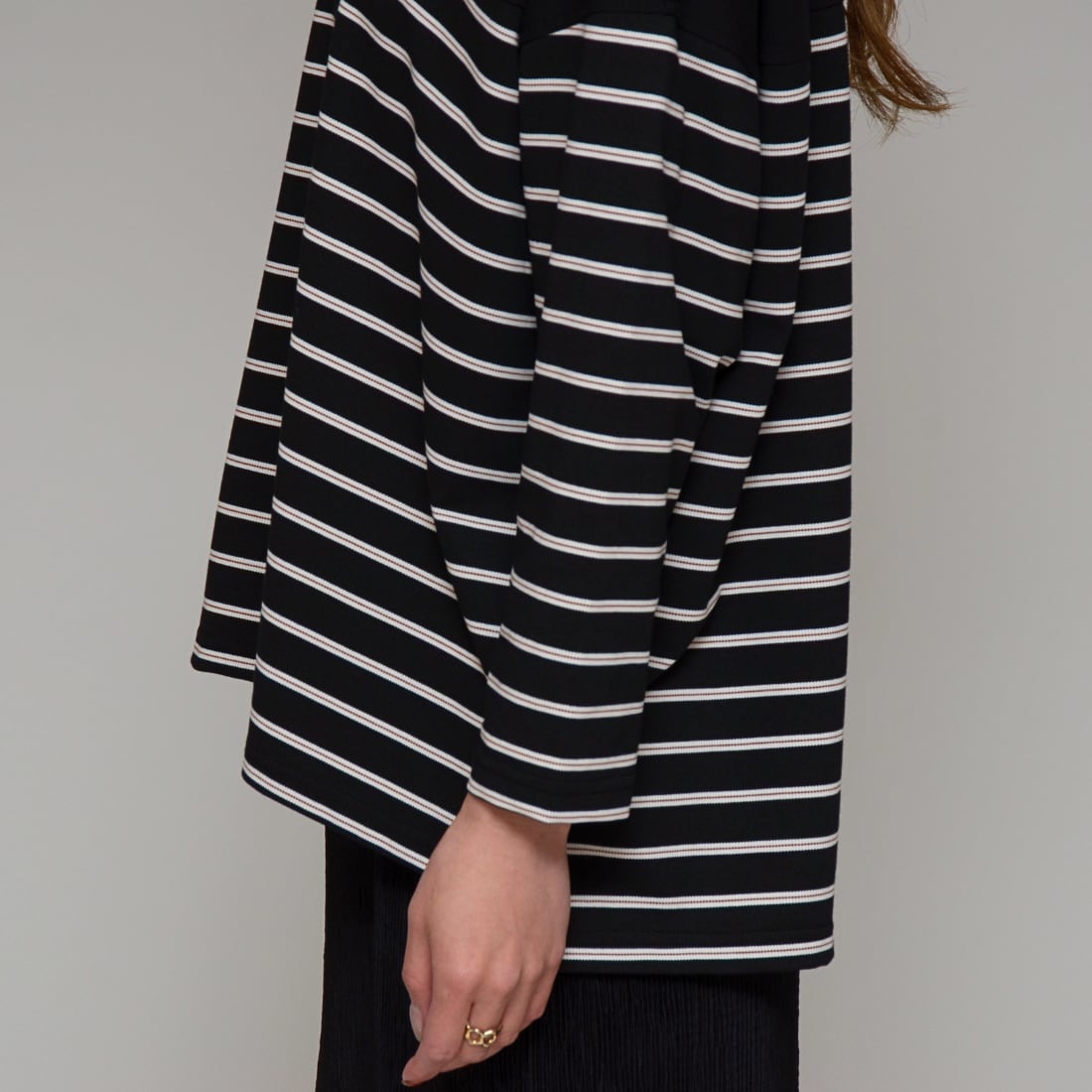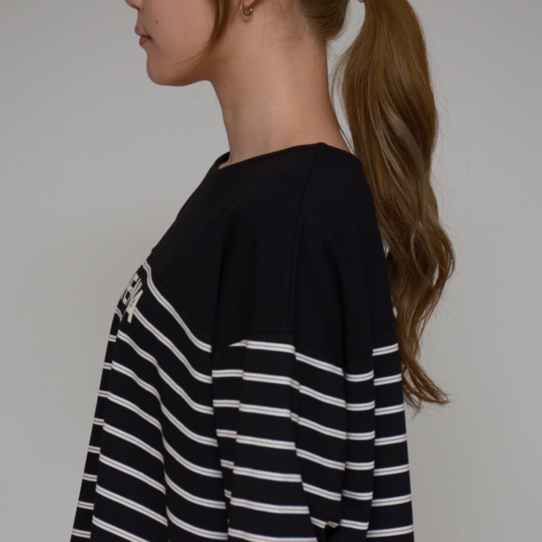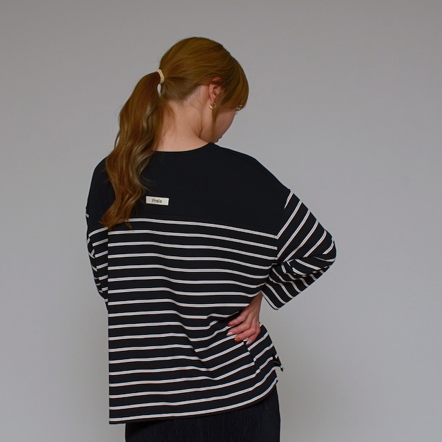 【異素材コンビ】 ドライポンチ×ボーダープルオーバー ‐ LER-2628 ブラック ‐