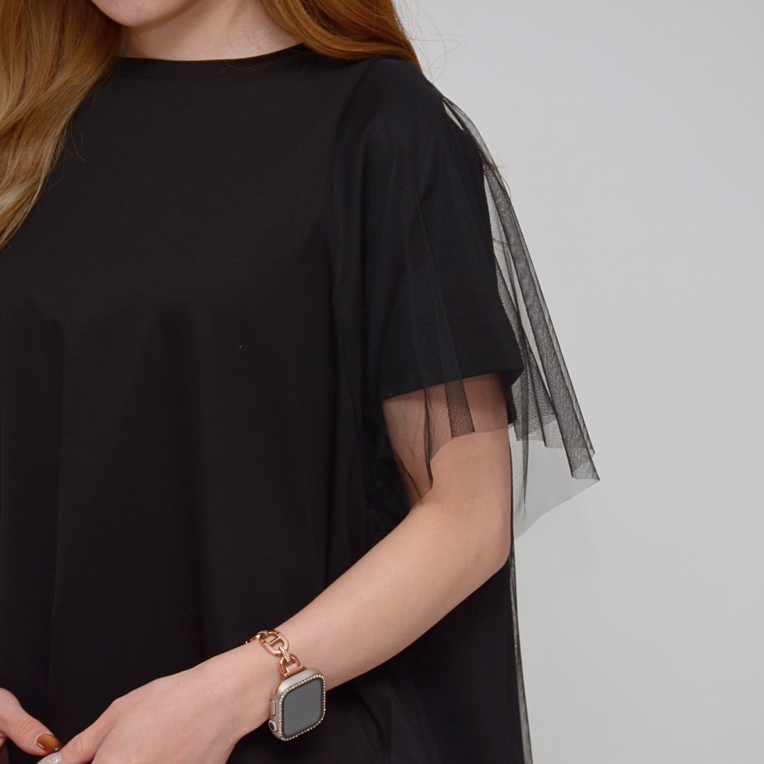 【後ろ姿で魅せる】 バックバルーン・チュールドッキングT ‐ LER-2612 ブラック ‐