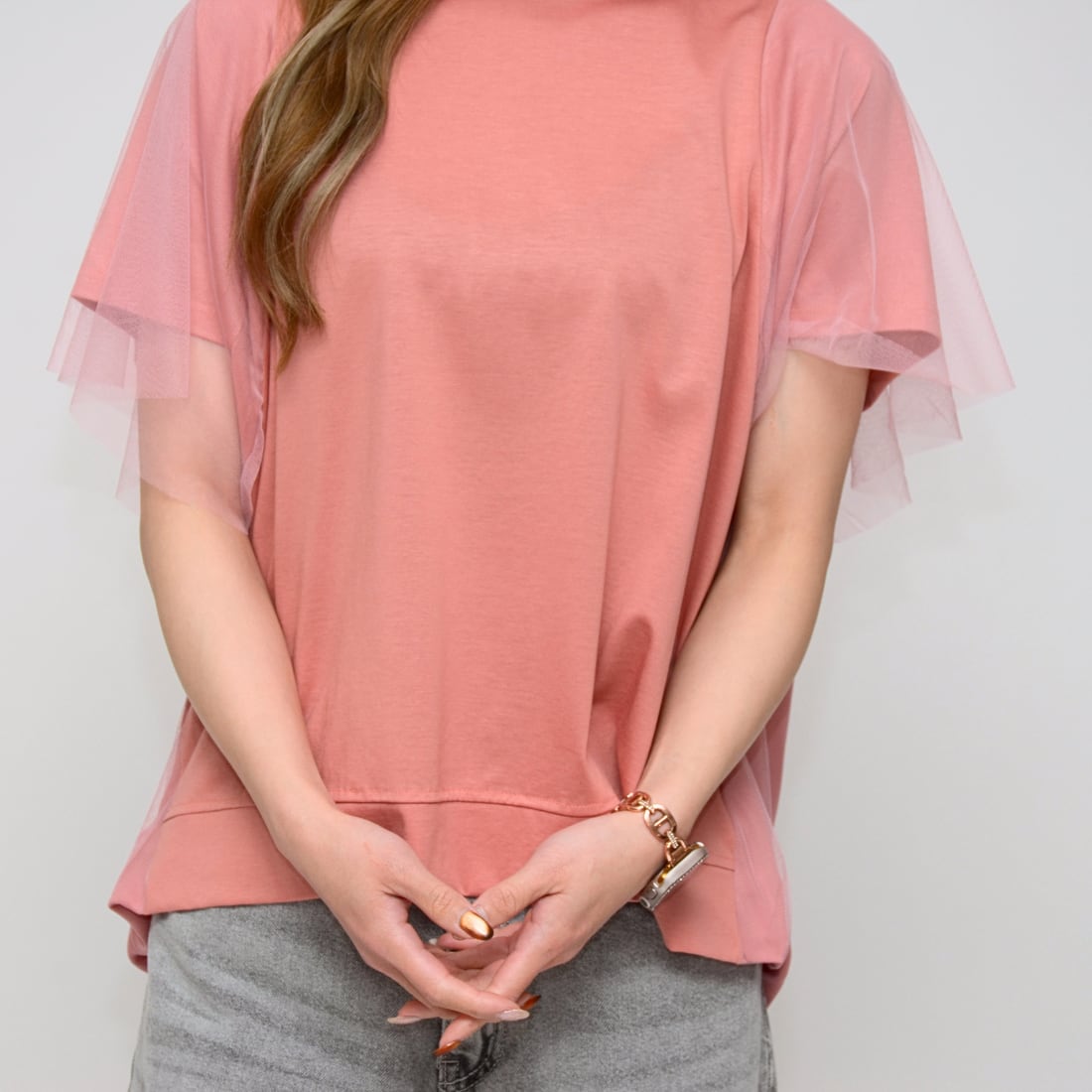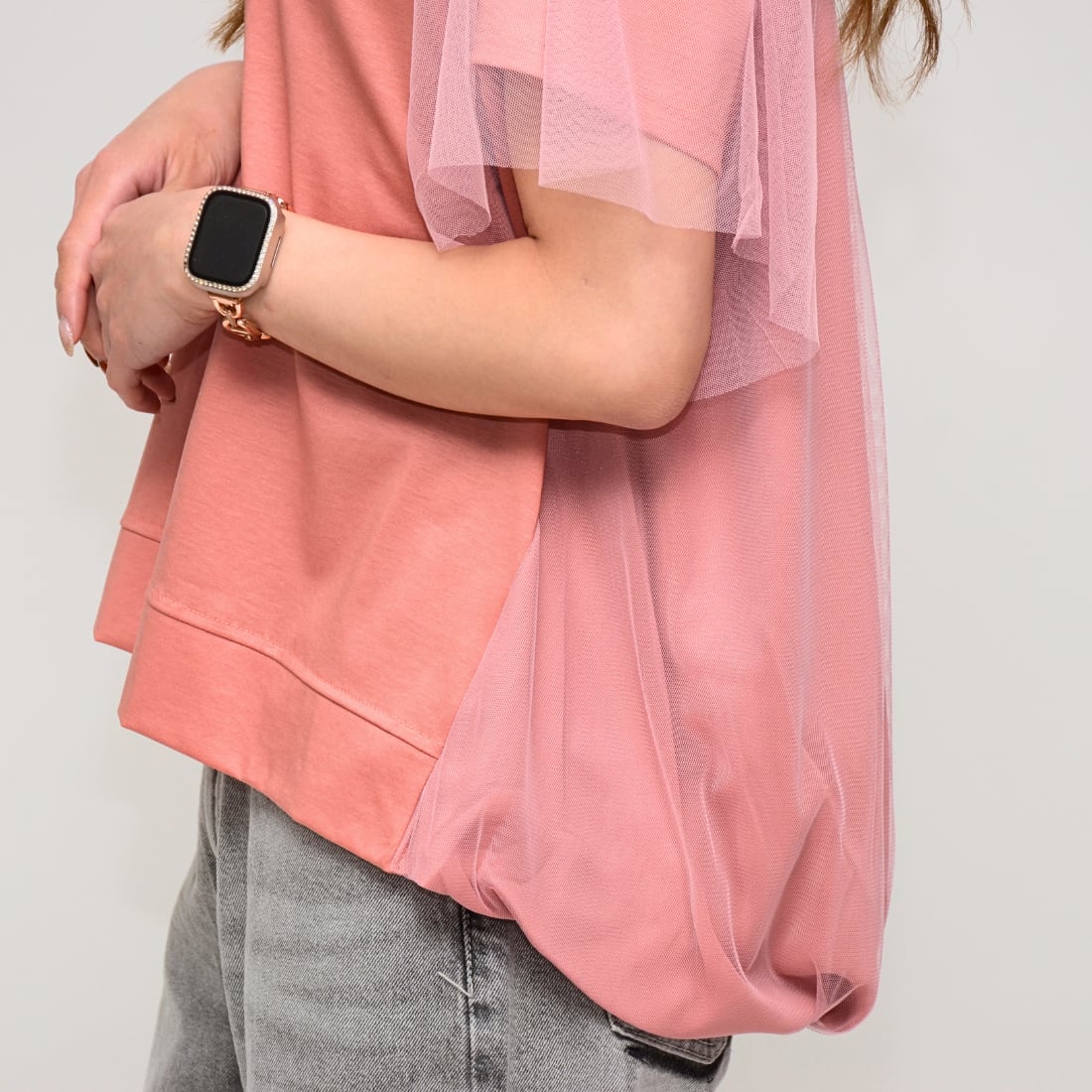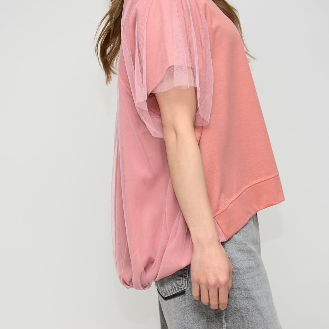 【後ろ姿で魅せる】 バックバルーン・チュールドッキングT ‐ LER-2612 ダスティピンク ‐