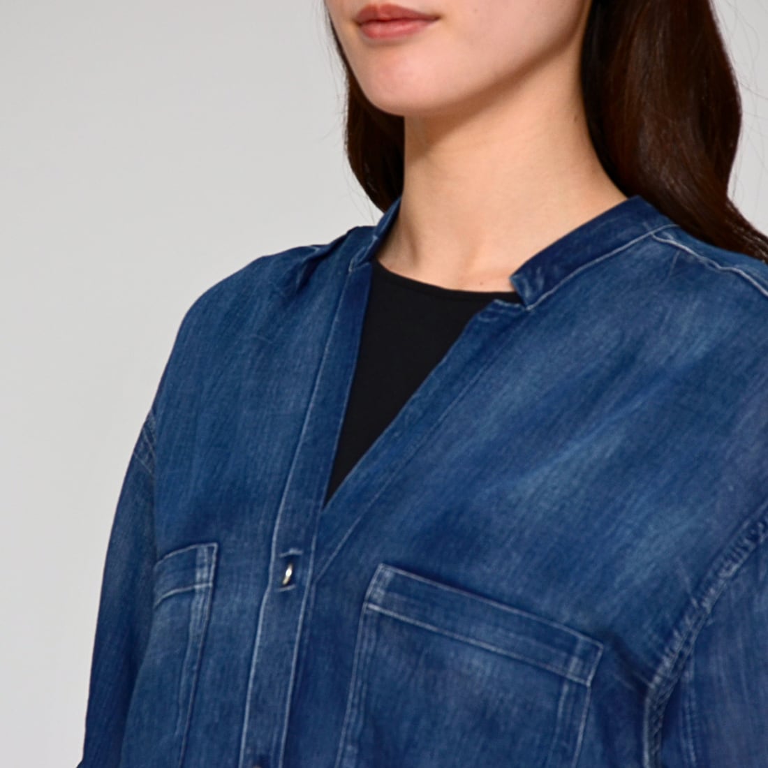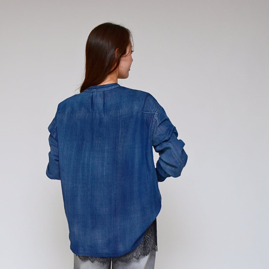 【洗練のシアー感】 シアーデニム・スキッパーシャツ ‐ LEI-2587 インディゴ ‐