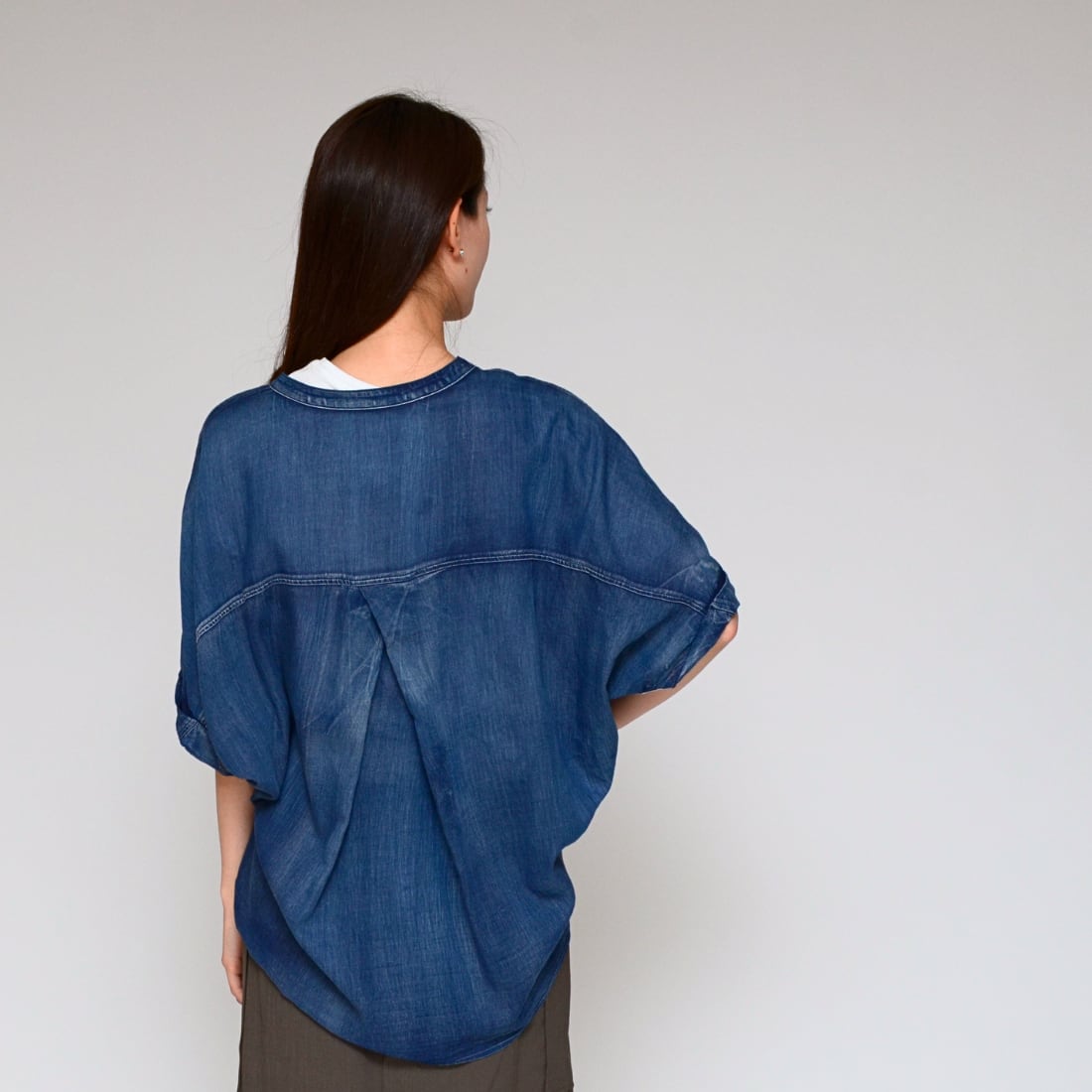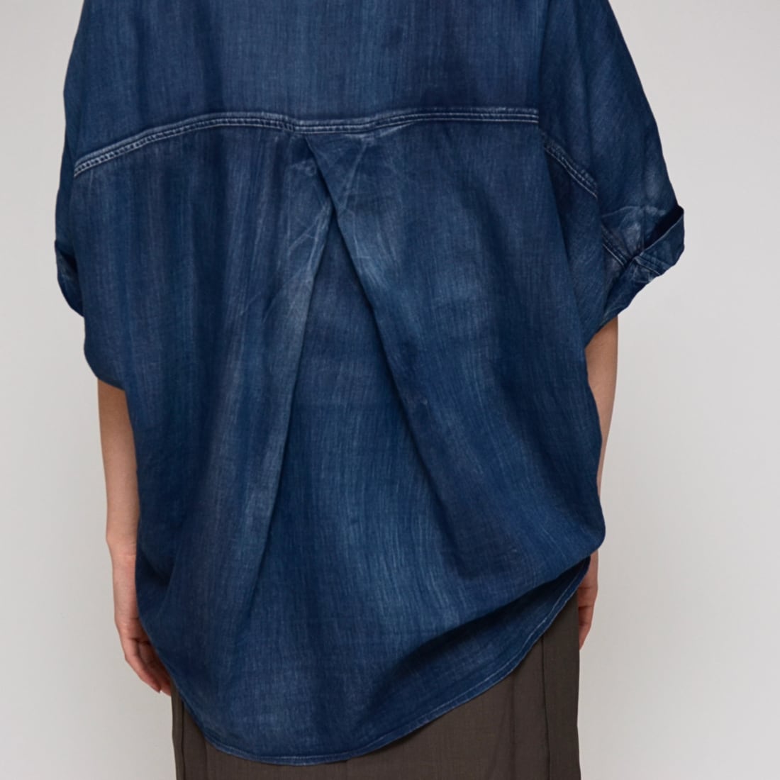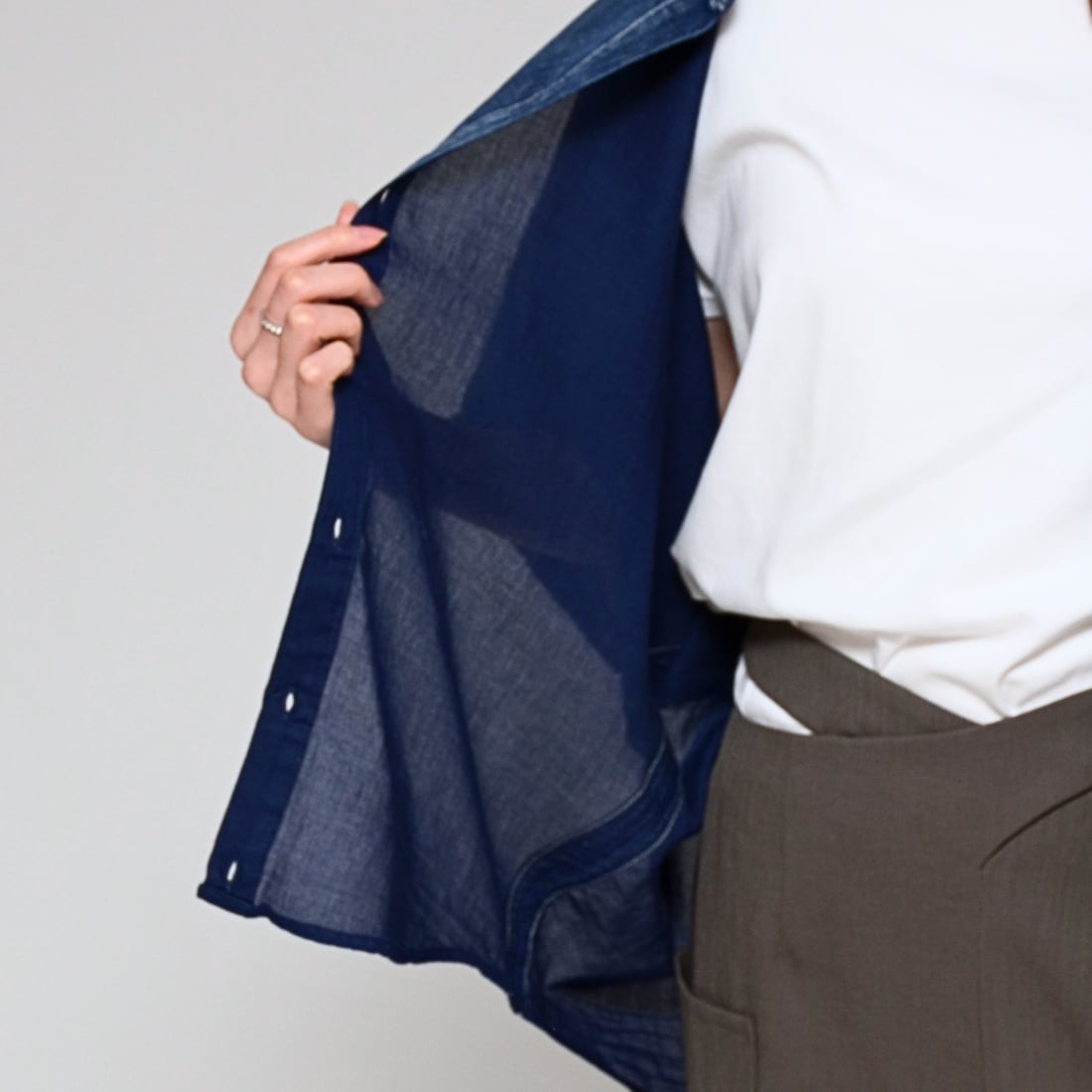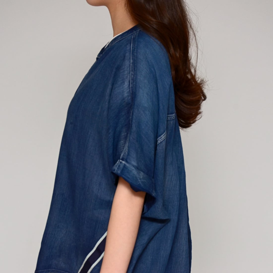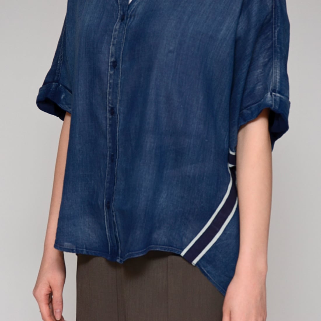 【表情豊かな抜け感】 シアーデニム・配色サイドテープシャツ ‐ LE!-2607 インディゴ ‐