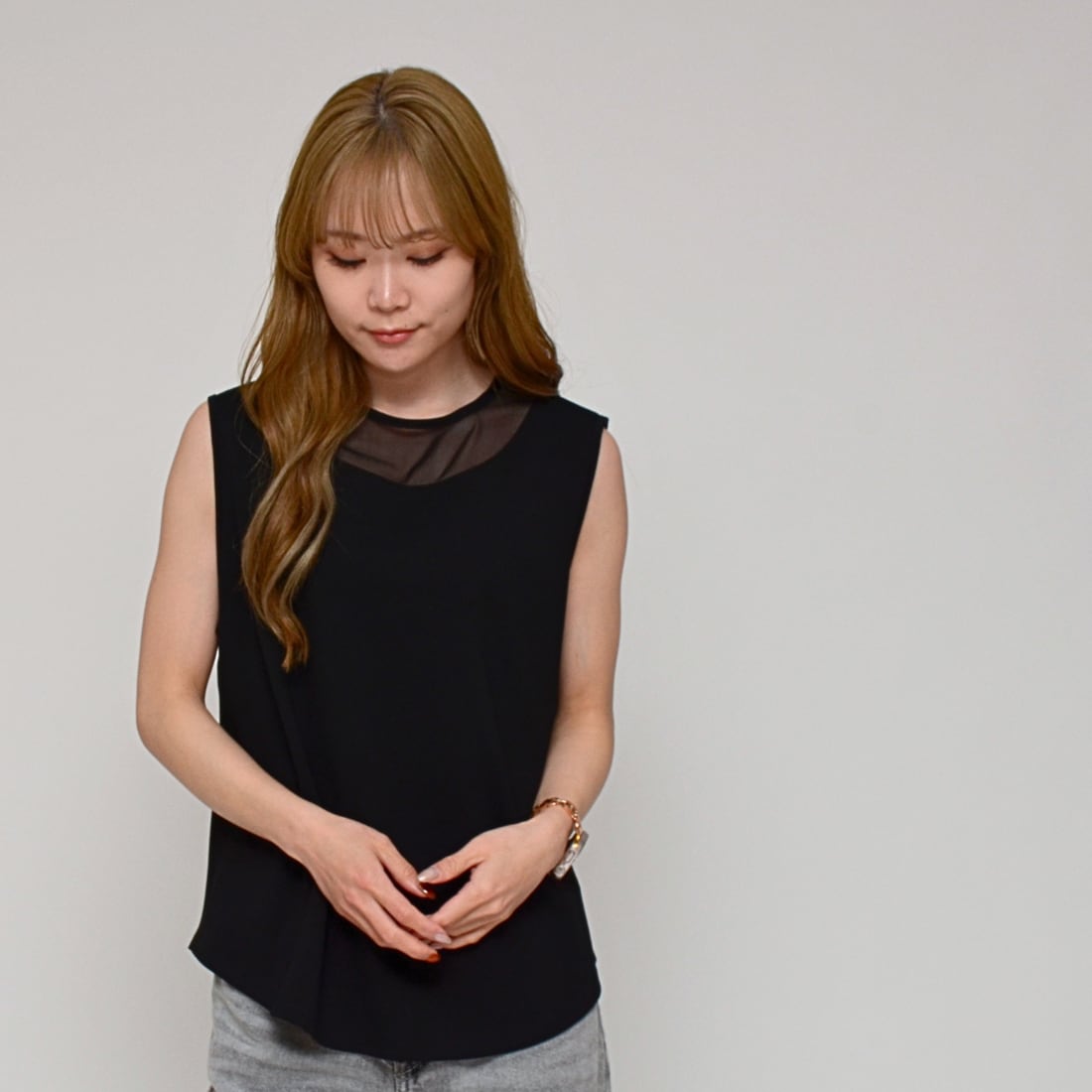 涼やかなタンクトップで登場」