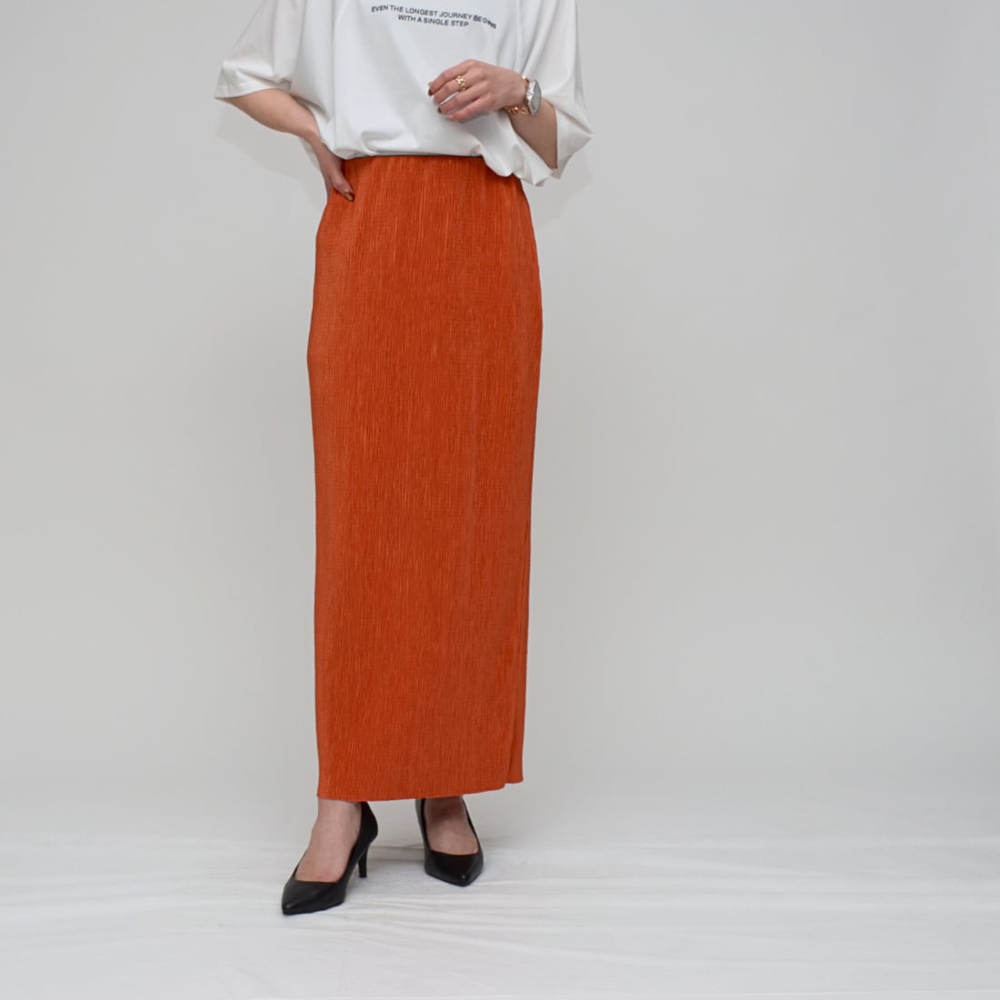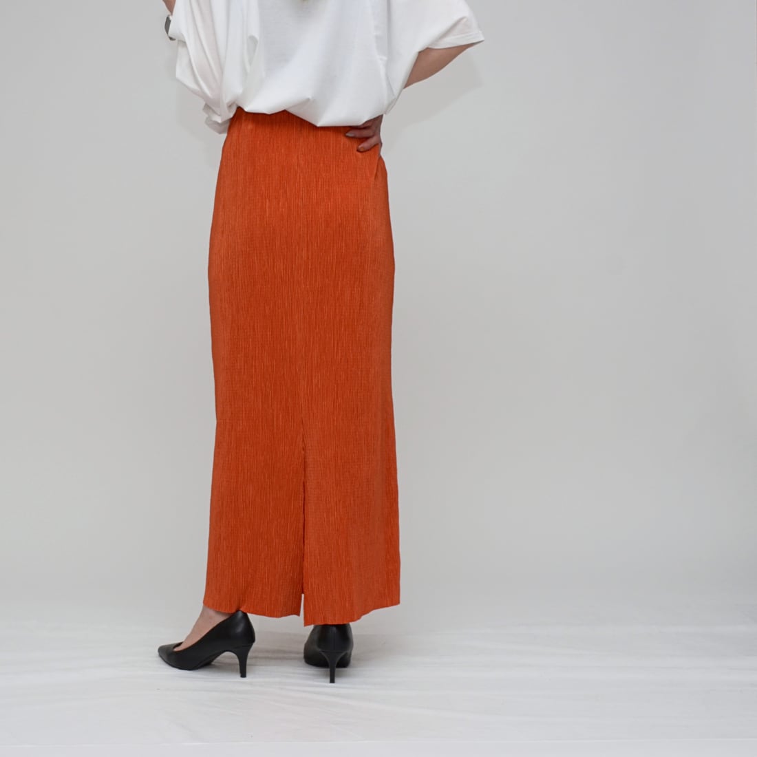 【驚きの伸縮性】 ランダムリブ・タイトスカート ‐ LEVK-2593 テラコッタ ‐