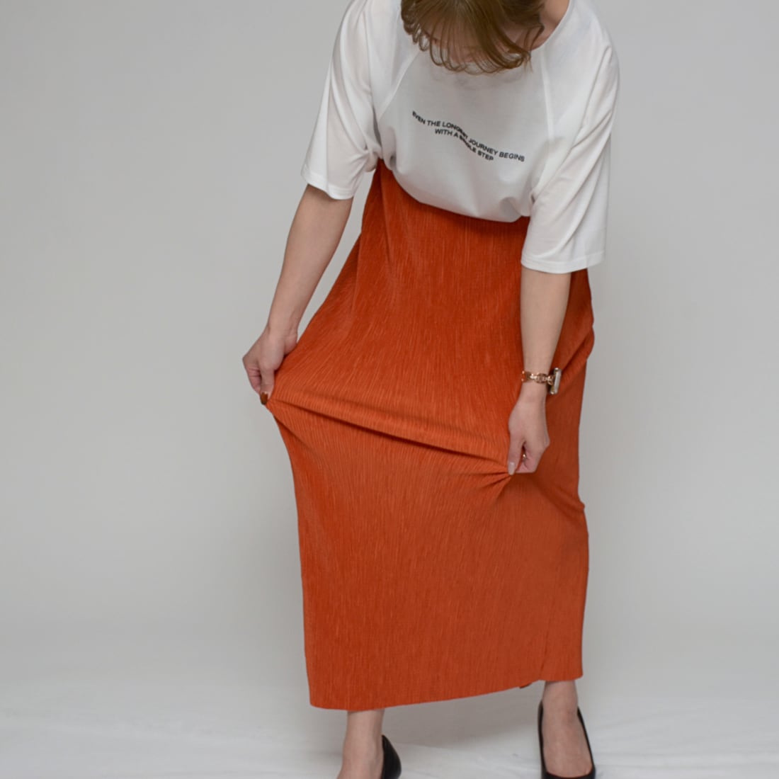 ゆったりとしたトップスと合わせれば、